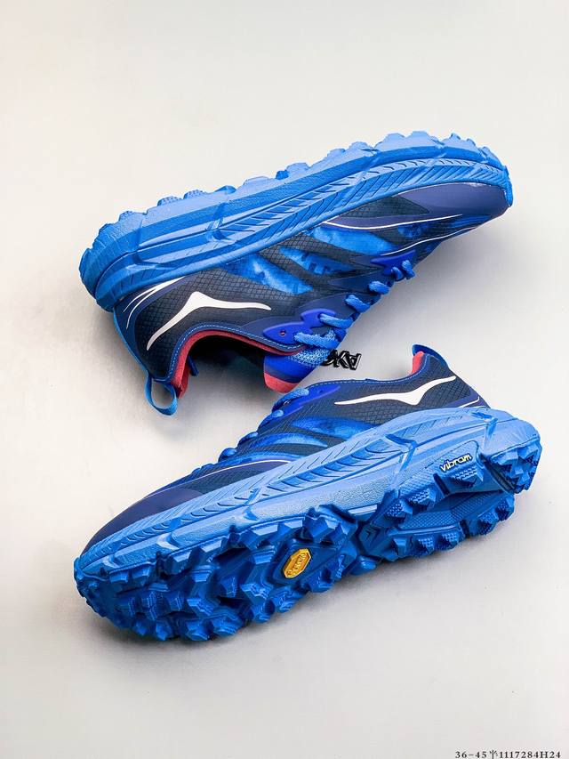 Company-grade Satisfy X Hoka Running Mafate Trail New Colorway Mesh Breathable Sneakers DDD This shoe inherits the design of Hoka's classic trail running shoe, the Mafate Speed4, and innovates and improves upon it, making it suitable for outdoor trail running while also full of fashionable elements DDD Its semi-transparent upper design not only makes the shoe look lighter but also provides good breathability, while the protective ripstop nylon fabric ensures durability in complex terrain DDD 1117284H24 DDD