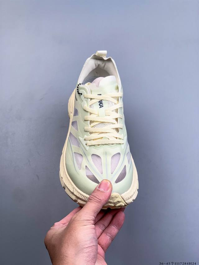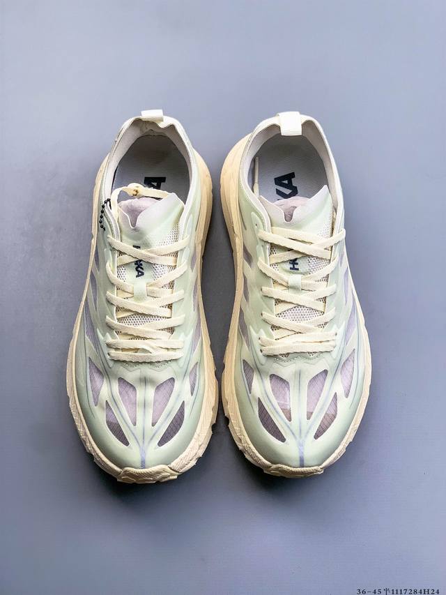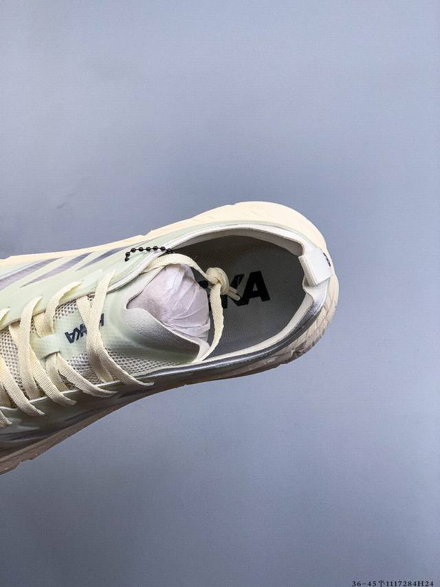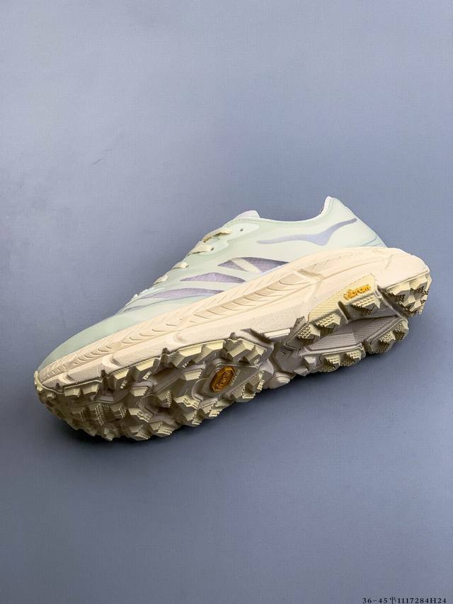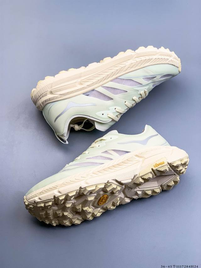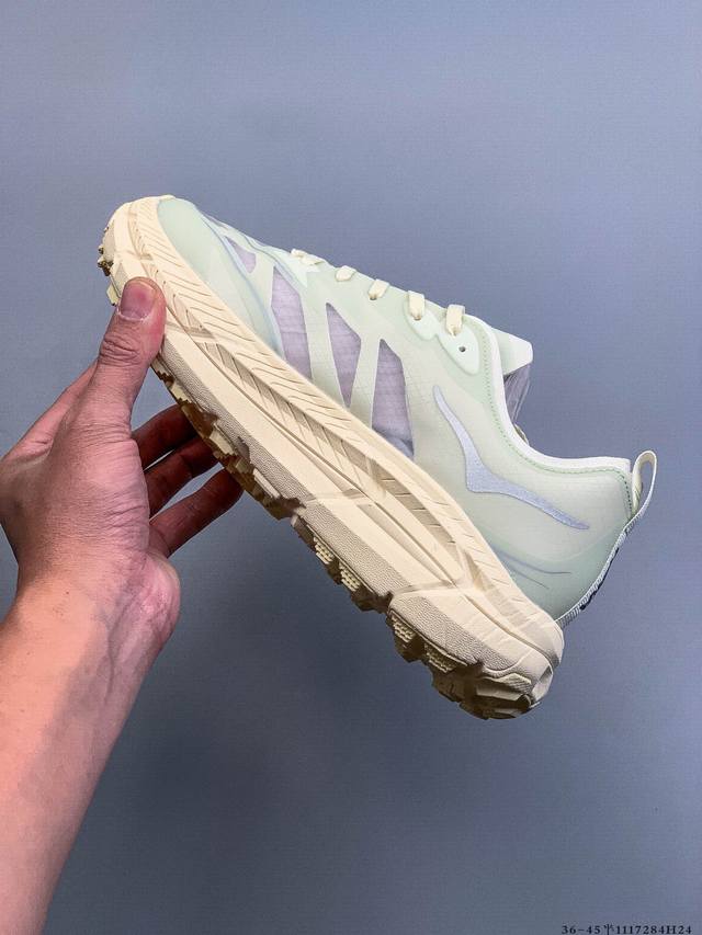 Company-grade Satisfy X Hoka Running Mafate Trail New Colorway Mesh Breathable Sneakers DDD This shoe inherits the design of Hoka's classic trail running shoe, the Mafate Speed4, and innovates and improves upon it, making it suitable for outdoor trail running while also full of fashionable elements DDD Its semi-transparent upper design not only makes the shoe look lighter but also provides good breathability, while the protective ripstop nylon fabric ensures durability in complex terrain DDD 1117284H24 DDD