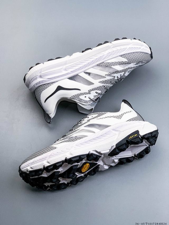Company-grade Satisfy X Hoka Running Mafate Trail New Colorway Mesh Breathable Sneakers DDD This shoe inherits the design of Hoka's classic trail running shoe, the Mafate Speed4, and innovates and improves upon it, making it suitable for outdoor trail running while also full of fashionable elements DDD Its semi-transparent upper design not only makes the shoe look lighter but also provides good breathability, while the protective ripstop nylon fabric ensures durability in complex terrain DDD 1117284H24 DDD