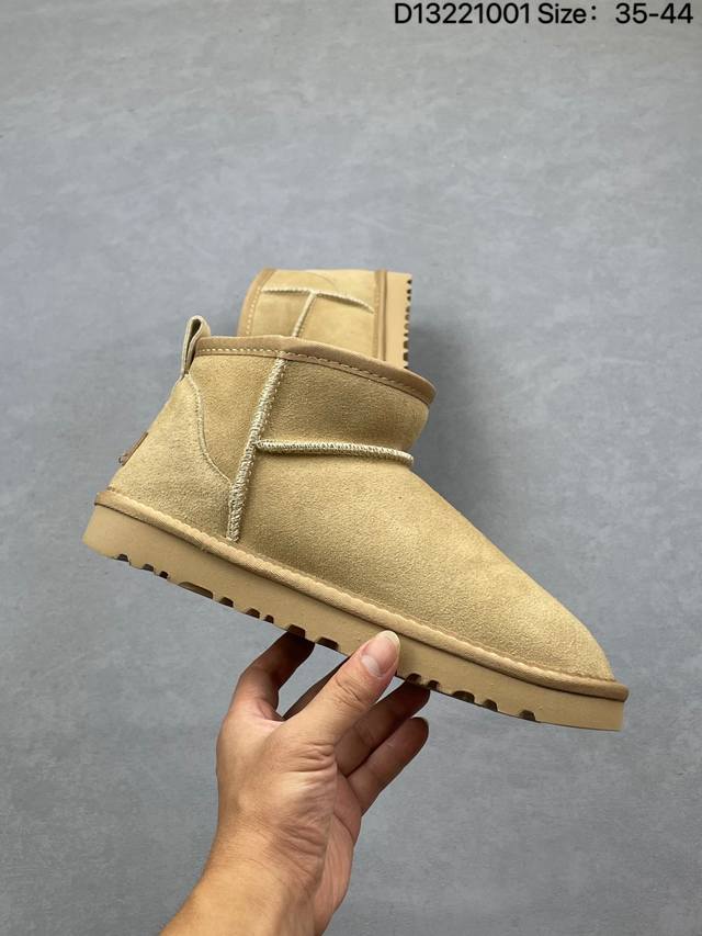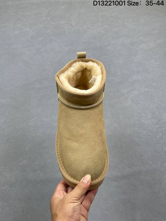 Company-grade Ugg cotton snow boots, playful and cute with versatile styles. American luxury brand Ugg flat series winter snow casual warm home closed-toe cotton slippers. Officially packaged with inspection label. Made with original factory stain-resistant and waterproof leather, non-slip and wear-resistant, lightweight outsole. Trendy and versatile British style comfortable slippers, autumn and winter casual thick sole height-increasing fashionable men's and women's shoes with excellent warmth performance, a must-have for cold seasons. Type: Men's and women's shoes. Sizes: 35 36 37 38 39 40 41 42 43 44. Code: D1322 1.
