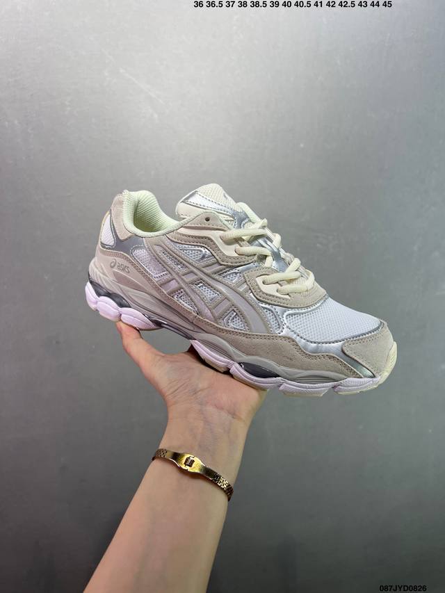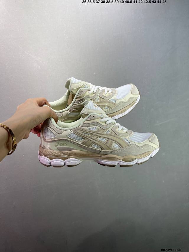 Company-level Asics Gel-Nyc breathable mesh upper with some synthetic leather material using the new Ahar + rubber material for greater wear resistance