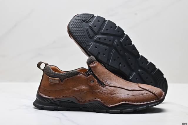 Company-level [High-end Genuine Leather] American Celankalin Men's Autumn Slip-on Zipper Men's Casual Shoes Large Size