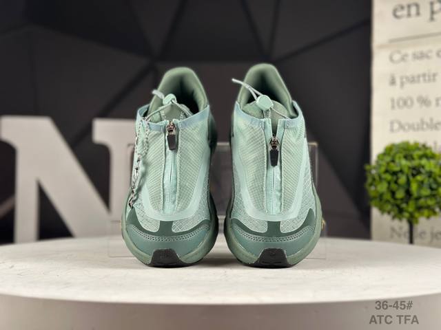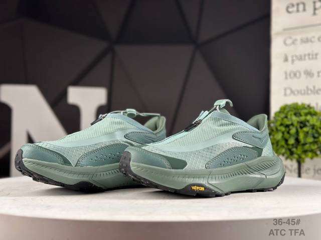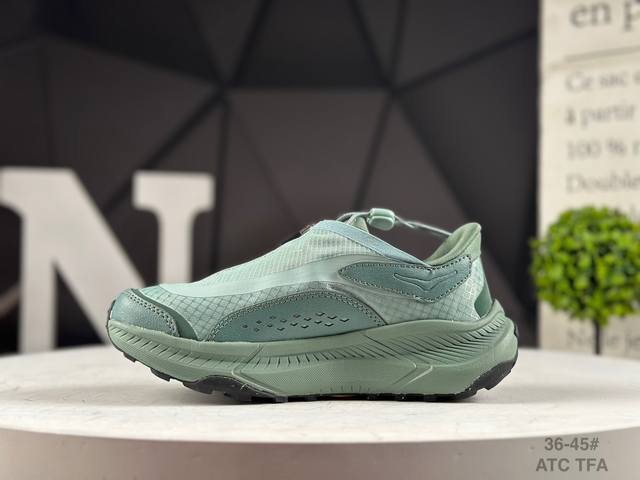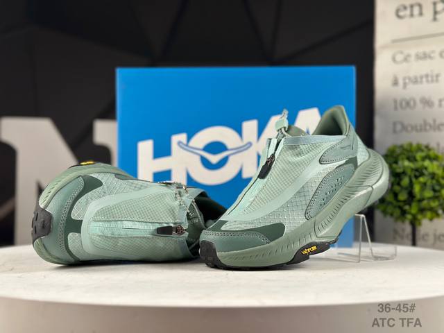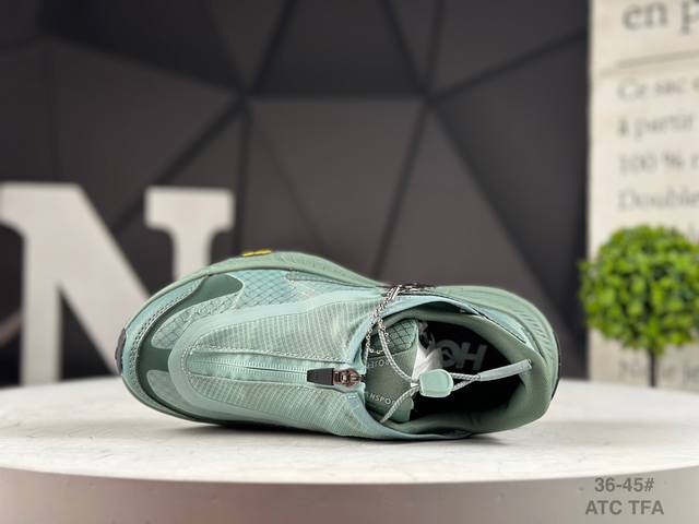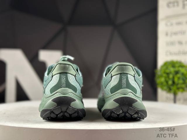 The thick sole design with Hoka bloodline attributes provides shock absorption and protection when going downhill quickly