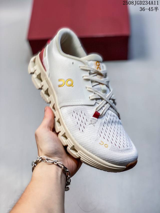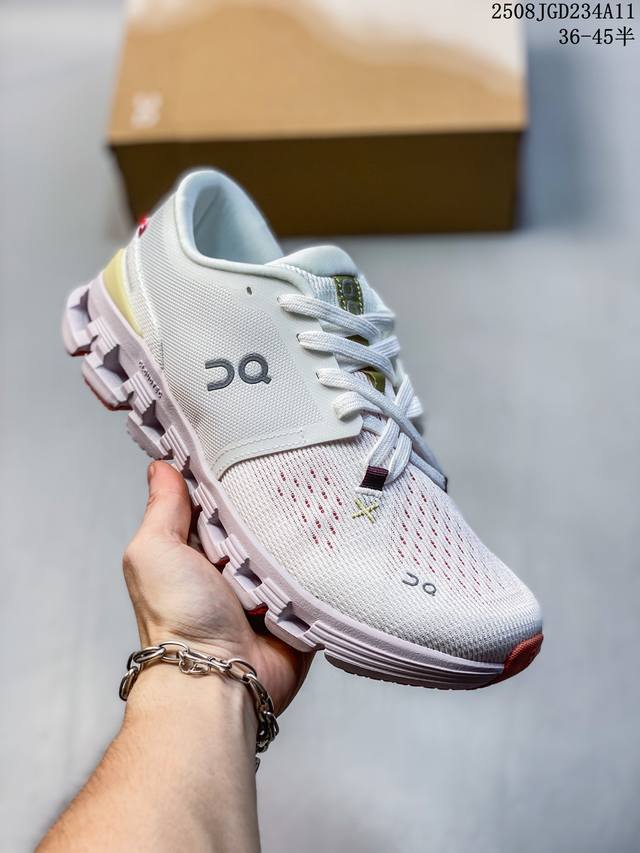 . The design of the Cloudsurfer Next shoe body is inspired by On's professional competition shoes. The upper is made of engineered woven material to provide a seamless fit. The lightweight and breathable upper conforms to the foot to ensure a comfortable fit and a stable lockdown effect. The upgraded rubber gasket on the sole provides high grip and durability in both dry and wet conditions.
