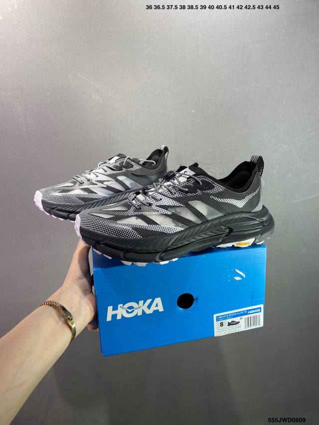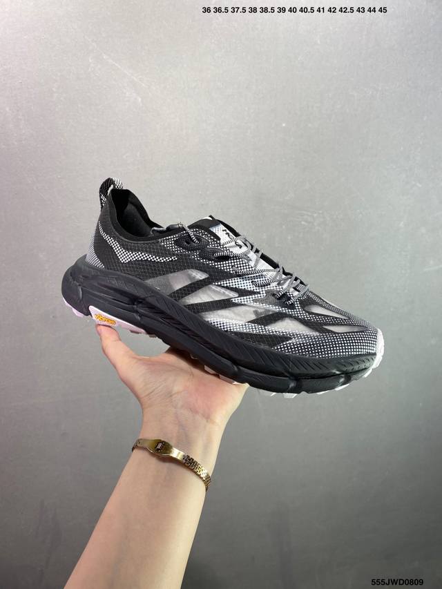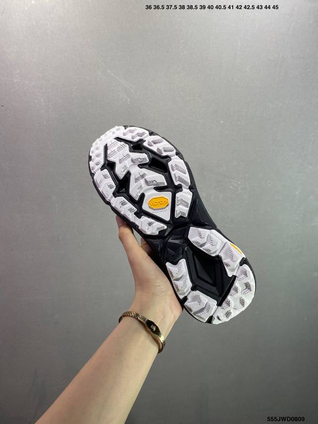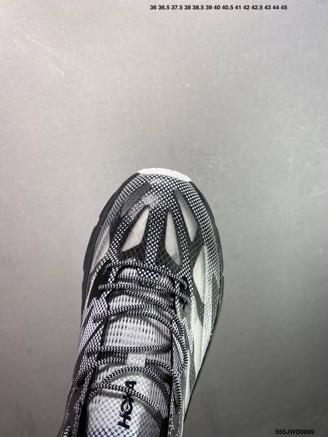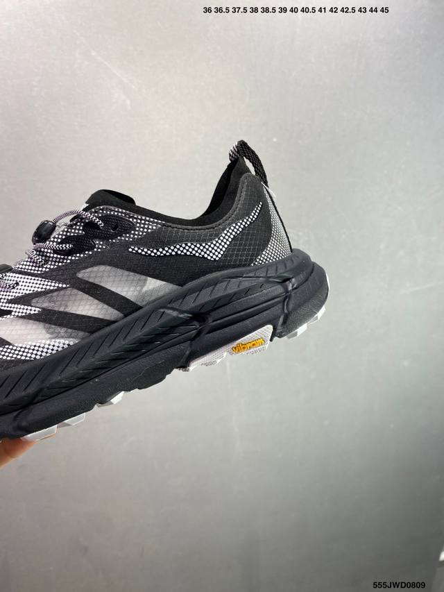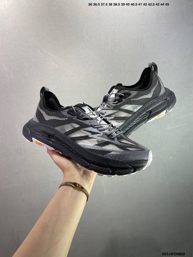 This shoe inherits the design of Hoka's classic trail shoe, the Mafate Speed 4, but also innovates and improves it, making it suitable for outdoor trail running while also being stylish and trendy. The translucent upper not only makes the shoe look lighter but also provides excellent breathability, while the protective ripstop nylon fabric ensures durability in challenging terrain.