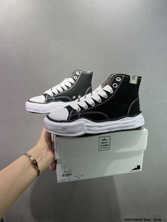 Company-level Shawn Yue's favorite item, retro dissolving style, Japanese concept fashion designer Mihara Yasuhiro's brand Mmy Maison Mihara Yasuhiro Original Sole Canvas Low deformation dissolving ice cream bottom low-top canvas splicing fabric casual versatile sneakers Size: 36-45