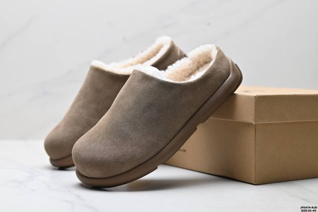 Company-level Ugg Little Potato Retro All-match Half-slip Birkenstock Loafers Warm Winter Plus Velvet Casual Fashion High-value Comfortable Slip-on Closed-toe Slippers