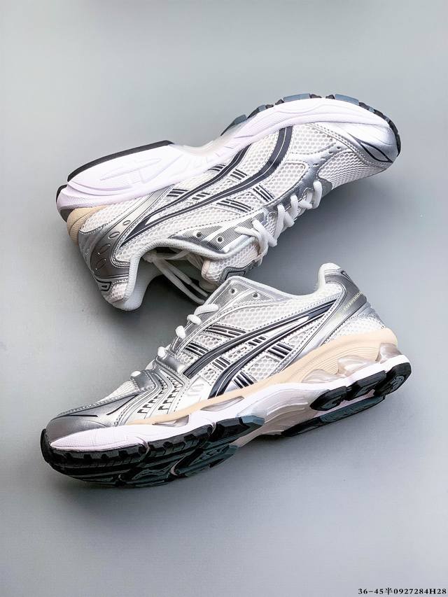 Constructed of eco-friendly space synthetic leather with a breathable mesh upper#Midsole with 3D visible Gel cushioning#Upgraded Eva cushioning midsole technology combined with a durable rubber outsole. A 13-year-old classic returns for the first time, its irresistible charm irresistible! The Asics Gel Kayano 14 series of lightweight, cushioned, casual running shoes from Japanese professional running shoe brand ASICS debuted in 2018 to much anticipation. Inspired by the word "Flash," designer Hidenori Yamashita created a futuristic metallic upper and upgraded its performance from the inside out, creating a complete overhaul from the inside out. This landmark creation celebrates the Gel-Kayano family legacy and the continuation of classic running shoe culture. The Asics Gel Kayano 14 running shoe reinterprets a retro running shape, reimagining it with a late-2000s aesthetic. Its silver and blue upper is exceptionally upscale. Mesh panels and various details throughout the upper and toebox enhance breathability. The Asics Gel Kayano 14 features Gel cushioning on the heel midsole and multi-density, durable outsole, providing high impact resistance, cushioning, and protection from ground impact for exceptional comfort. (