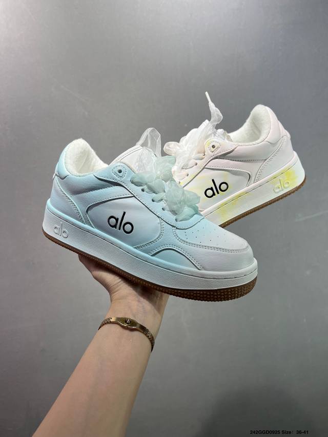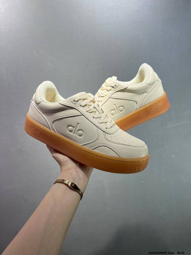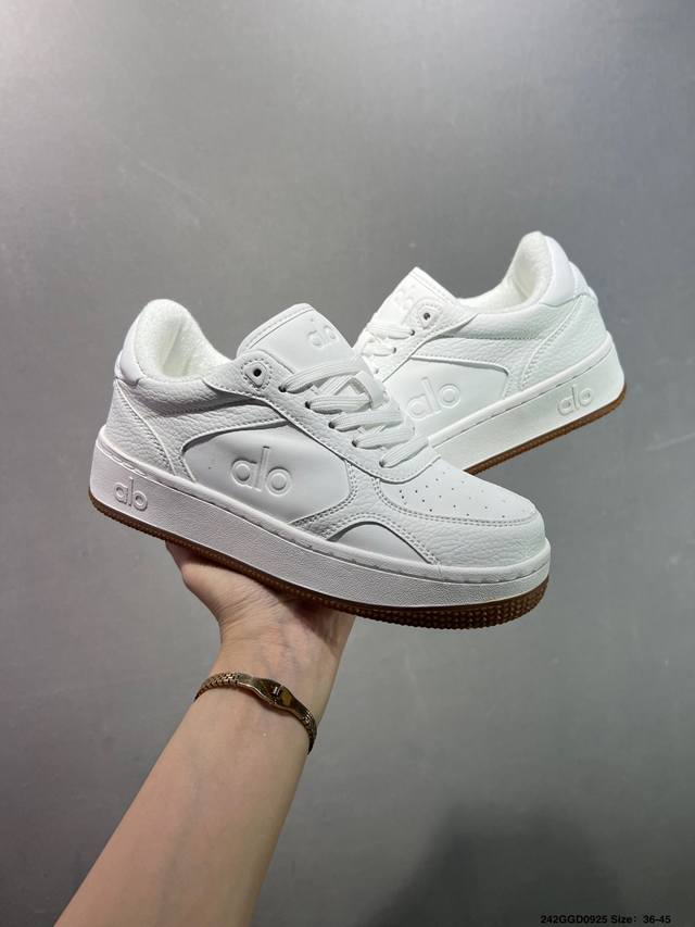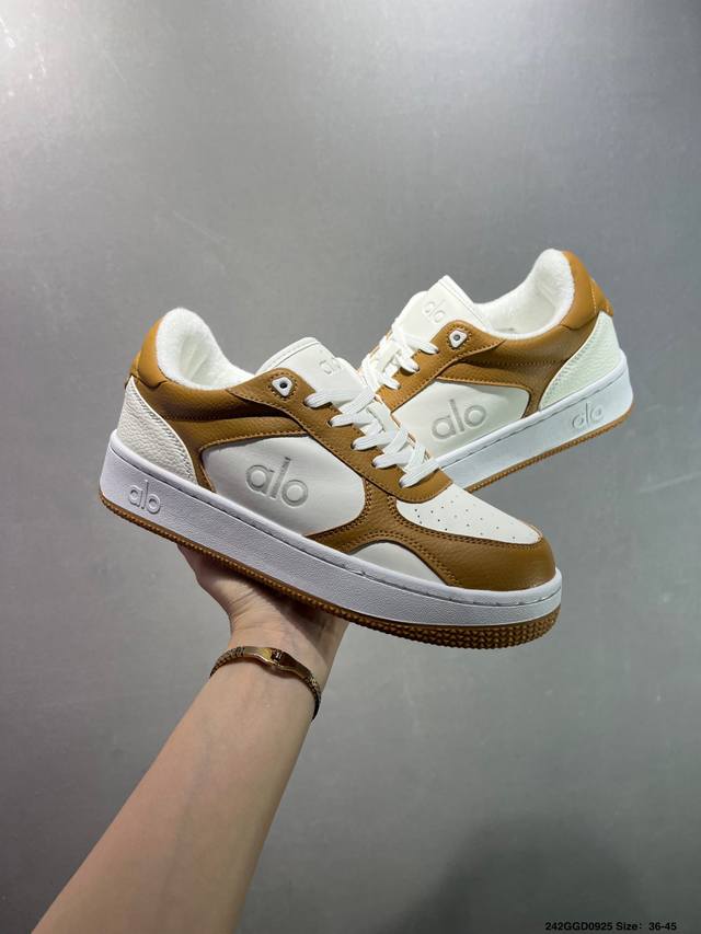 Corporate-grade Alo Yoga Recovery Mode versatile, lightweight, non-slip, shock-absorbing low-top sneakers. The sole features a rubber sole with brown accents and a thick insole that adds at least 3 or 4 centimeters to your height. It also comes with a pair of pure white laces.