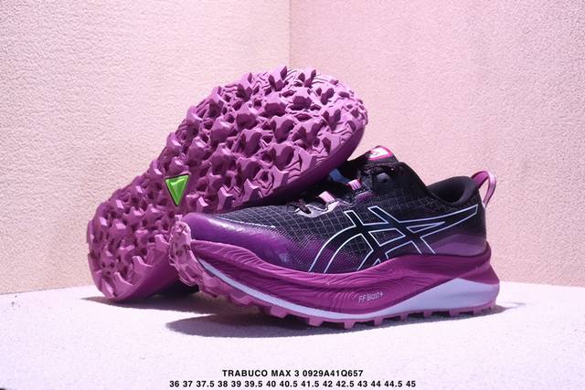 Corporate-grade Asics Gel-Trabuco Max 3 mesh, breathable, and durable off-road running shoes.