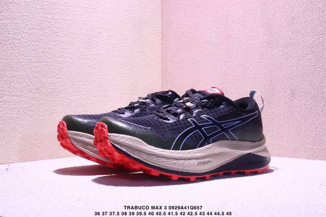 Corporate-grade Asics Gel-Trabuco Max 3 mesh, breathable, and durable off-road running shoes.