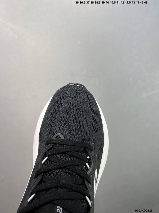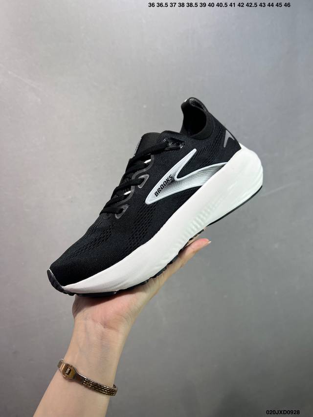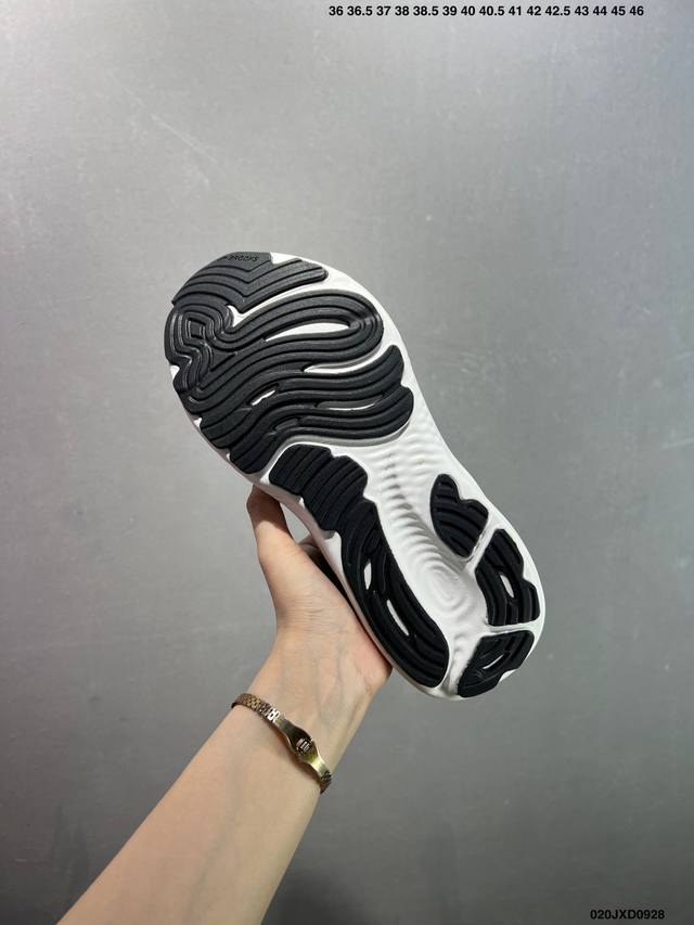 low-top cushioned running shoes. Nitrogen-infused, they offer exceptional cushioning. Brooks wearers know that the upper hasn't changed in ages, and the design hasn't changed either. The engineered mesh upper is soft and comfortable, while the forefoot last is traditional and wide, ensuring ample toe room. Generous sponge padding from the tongue to the heel provides a secure, comfortable fit. Unlike other brands, the Brooks material conducts heat quickly, so while thick and seemingly stuffy, it's actually very cool. The full-length Dna Loftv3 nitrogen foam and the thick, hard outsole rubber offer excellent wear resistance and decent traction.