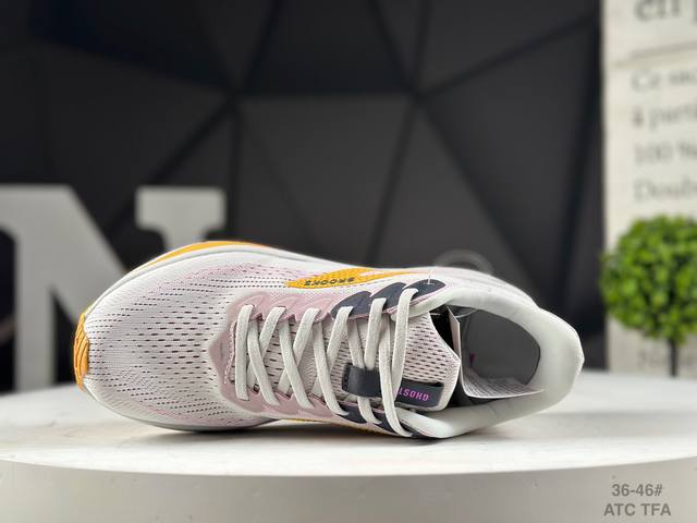 Corporate-grade half-size Brooks Ghost 17 classic thick-soled, height-enhancing athletic dad shoe with