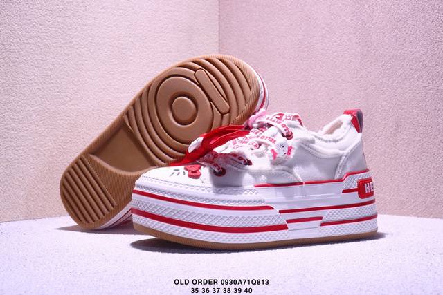 Corporate-grade Old Order retro, versatile, everyday, non-slip, breathable low-top casual shoes. The upper is crafted from a multi-material patchwork, with stitching neatly following the shoe's contours, showcasing both design and detail. The shoe's lining and tongue have been upgraded with a lightweight, spring-summer fabric that's soft, comfortable, and breathable. The thin rubber outsole, covered in custom-designed treads, feels lightweight and offers excellent slip resistance, extending to the toe and heel for impact protection. Sizes: 35-40. Xm0930Q813.