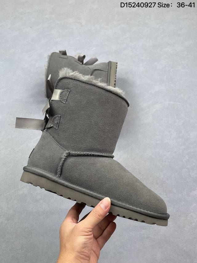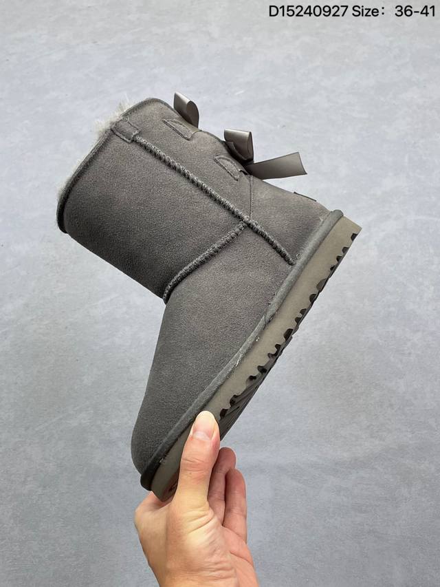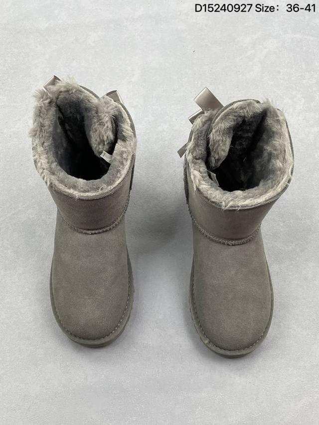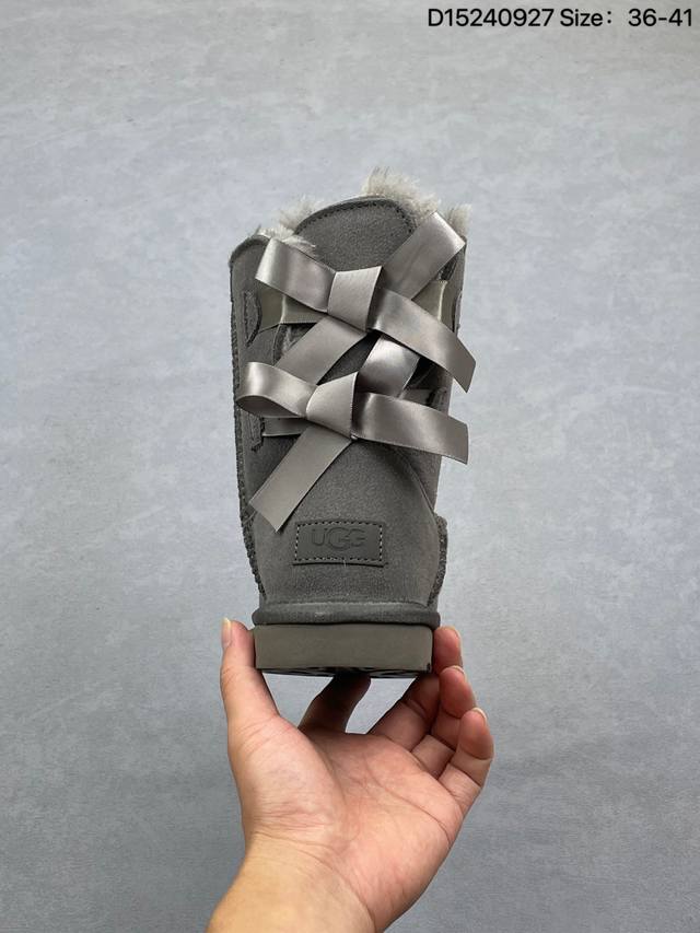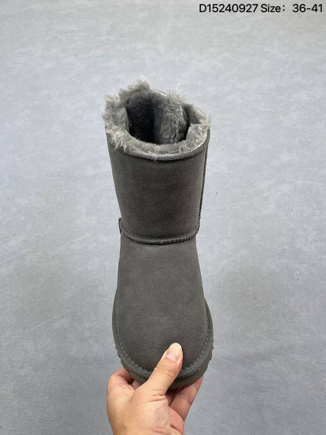 Corporate-grade Ugg women's snow boots, made in Guangdong, feature a TPU molded upper with an antelope brown wool insert. The upper is waterproof, with a 7mm Uggpure embedded wool lining and a removable Uggpure embedded wool insole. The Treadlite outsole offers excellent slip resistance, abrasion resistance, and excellent elasticity. This autumn/winter new product, featuring Zhou Dongyu, is a mid-calf, fleece-lined, casual, versatile ankle boot from the American luxury brand Ugg.