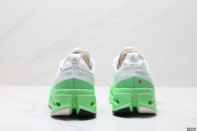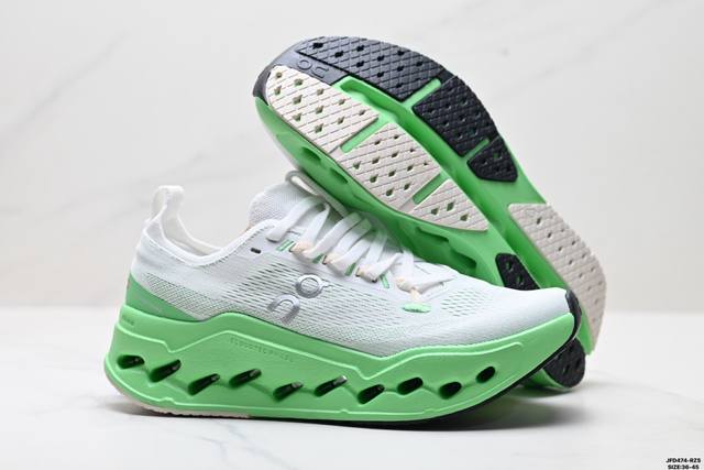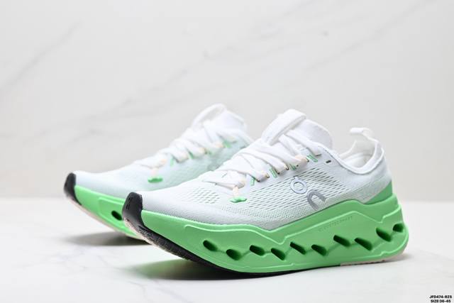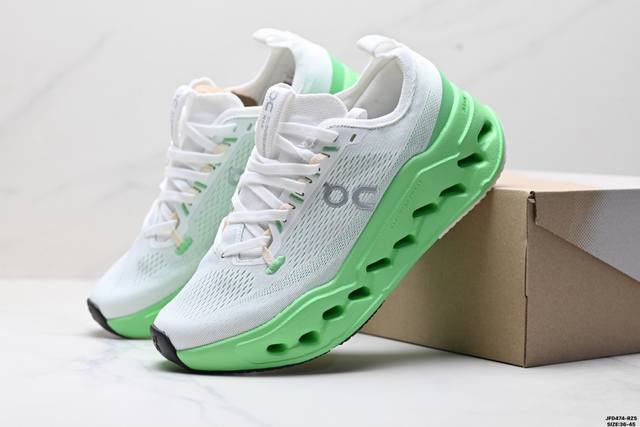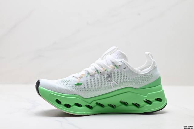 Corporate-level On Cloudsurfer Max, comfortable, versatile, simple and durable low-top running shoes. The design of the Cloudsurfer Max shoe body is inspired by On's professional competition shoes. The upper is made of engineered woven material to provide a seamless fit. The lightweight and breathable upper conforms to the foot, ensuring a comfortable fit and a stable lockdown effect. The upgraded rubber gasket on the sole provides high grip and durability in both dry and wet conditions. Size: 36-45