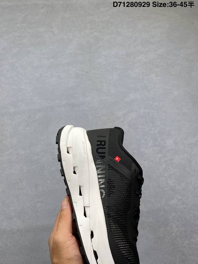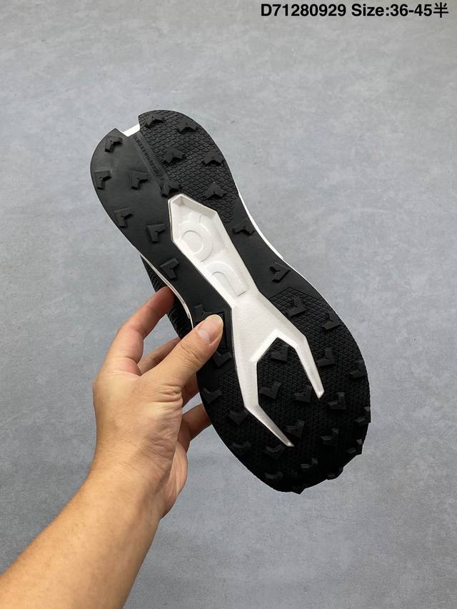 The design of the shoe body is inspired by On's professional competition shoes. The upper is made of engineered woven material to provide a seamless fit. The lightweight and breathable upper fits the foot to ensure a comfortable fit and a stable lockdown effect. The upgraded rubber gasket on the sole provides high grip and durability in both dry and wet conditions