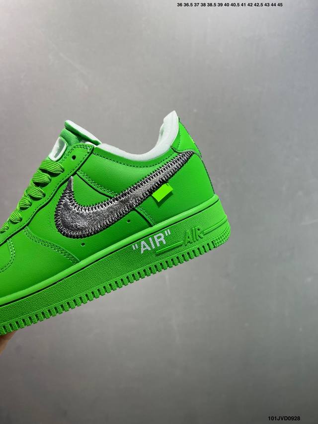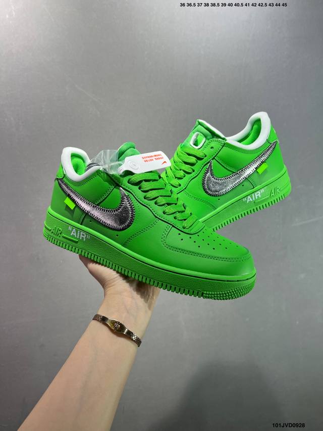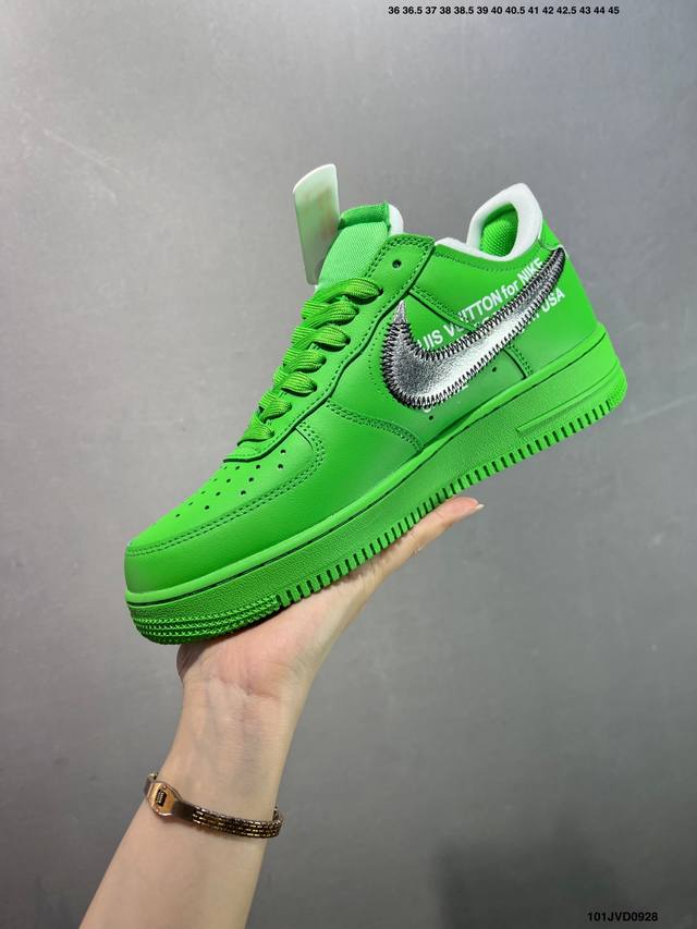 Corporate-level Ow x Nk Af1 Mca Art Museum co-branded Air Force 1 low-top sneakers. This model features blue as the main color, with a silver Swoosh logo and white slogan embellishment, presenting the deconstructed design of the co-branded series' signature. The red stitching on the side of the Swoosh is very conspicuous on the blue upper, echoing the red swap buckle. Virgil has written "For Serena Only" and "Virgil" on the midsole in marker, just like the limited edition friends and family members previously given to James and others.