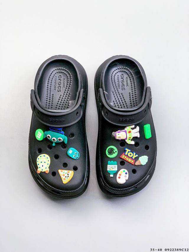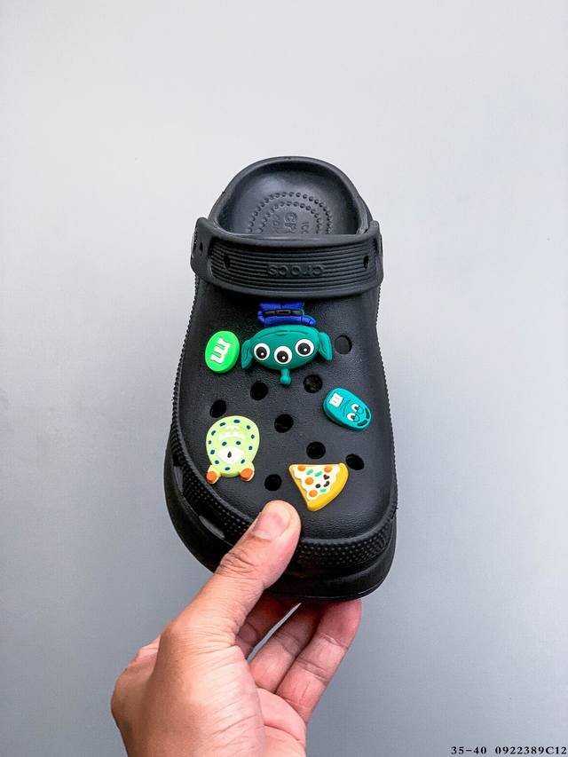 Cross Crocs Thick-Sole Hole Puff Shoes