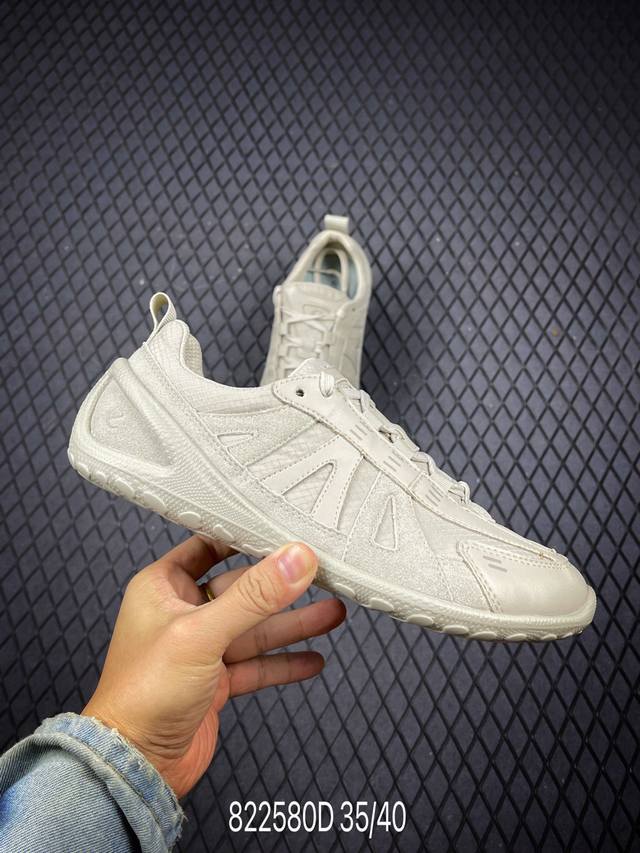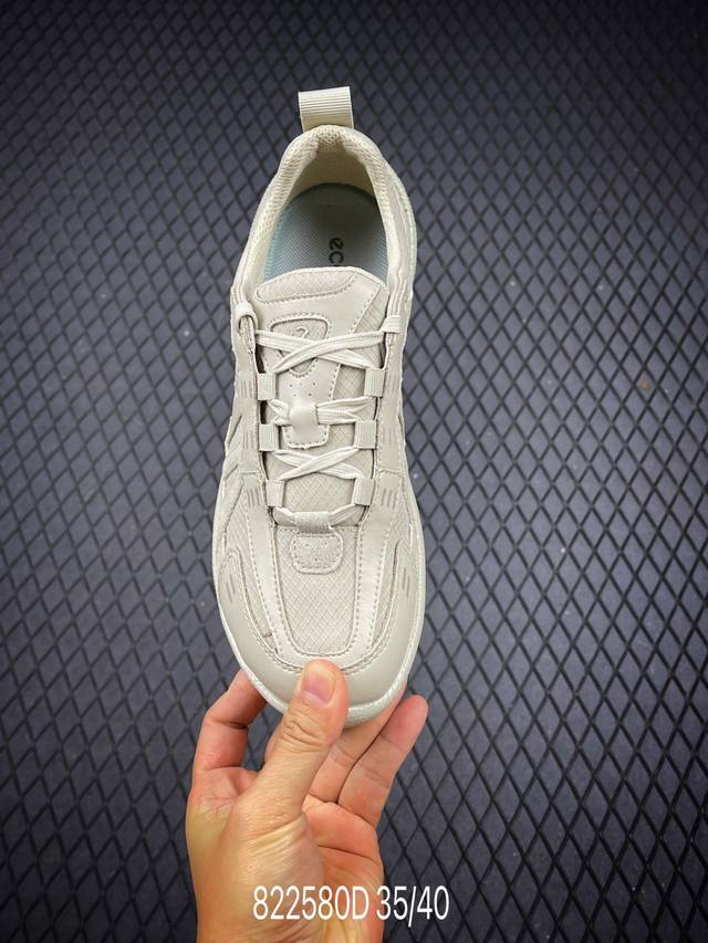 A new, versatile, casual Ecco outdoor casual shoe, a popular Xiaohongshu (Little Red Book) item. Breathable, lightweight, lace-up, and comfortable dad sneakers. Ecco is one of the world's four largest casual footwear brands, headquartered in Denmark. Its shoes are characterized by their lightweight, soft, flexible materials, and comfort. This Ecco shoe features a full leather upper, offering a stylish, minimalist look, and a non-slip, comfortable feel.