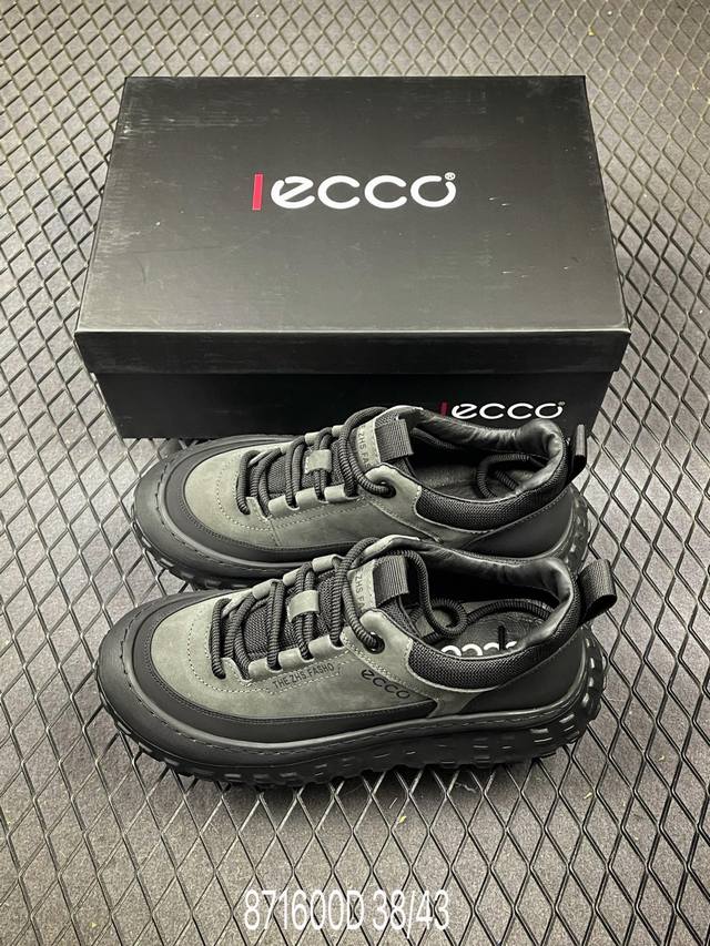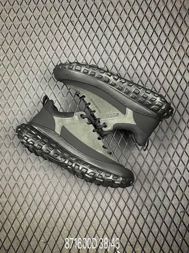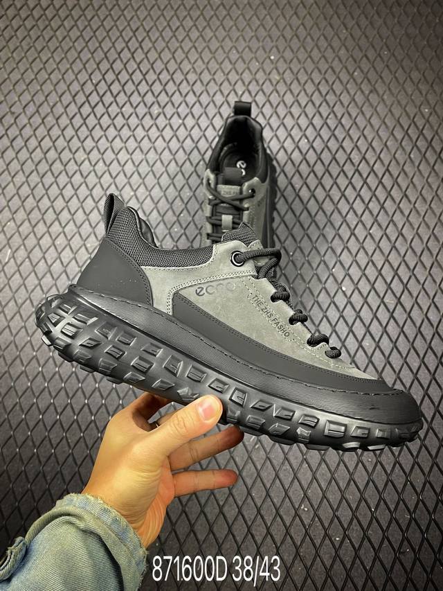 D DDD Ecco Men's New Sport Hiking Shoes - Lightweight, Shock-absorbing, Durable Cowhide, Outdoor Running Shoes, Off-road Series. Made with premium cowhide leather and a textile lining for stain resistance and breathability, these shoes offer excellent energy return and cushioning support, perfect for long-distance runs and 100km adventures. Direct injection molding connects the upper and sole in one piece for a secure, comfortable fit and toe -slip prevention. The rubber outsole is adaptable to various terrains, providing grip and durability for stable support and dynamic balance on steep slopes. Simple design for off-road adventures. Sizes: 38 39 40 41 42 43 (Leather shoe size code: 871600) DDD D