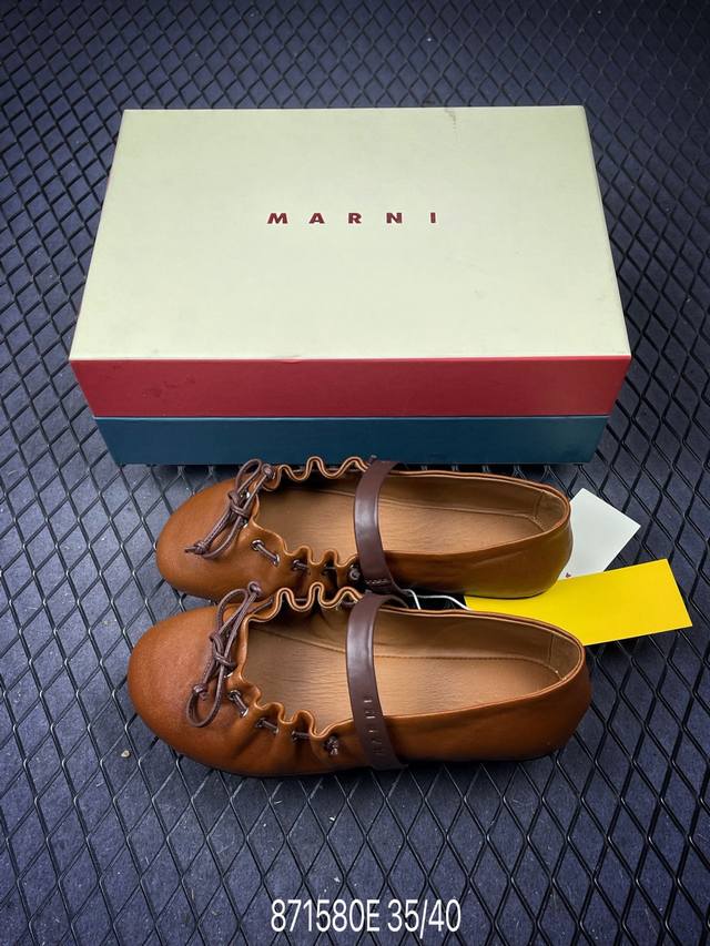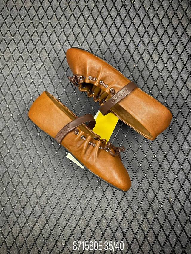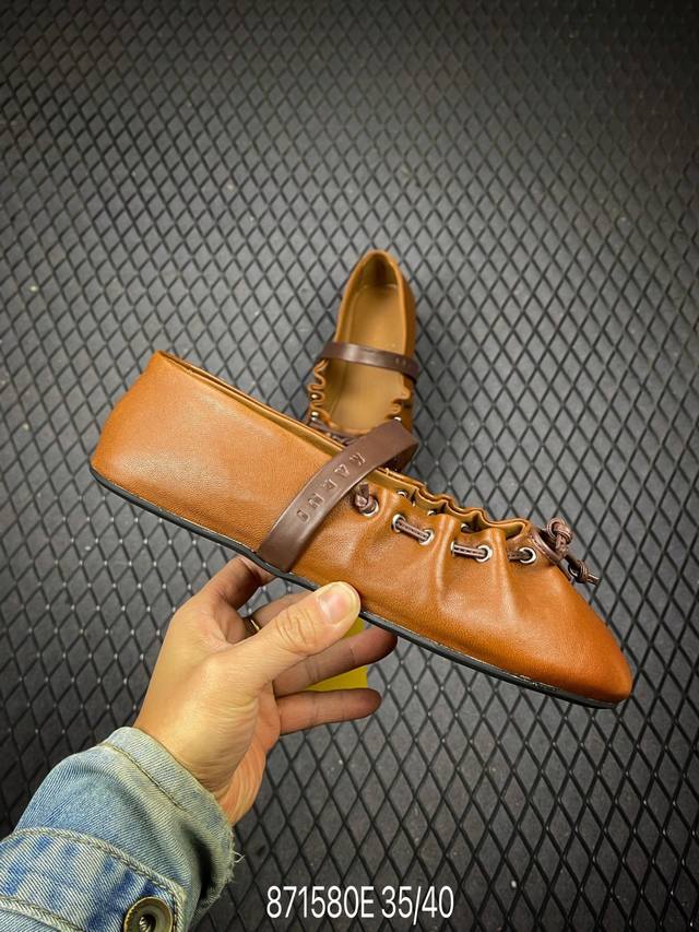 DDD 2026 Spring/Summer New Marni 26Fw Ruffled Bow Ballet Flat Mary Jane Shoes DDD Round toe silhouette, contrasting upper, brown bow and lace-up collar, presenting an overall cute and minimalist style. DDD Super cute Marni ballet flats, the color blocking and relaxed lace-up are just the right balance of sweet and cool. DDD The romantic season of Balletcore is here again. Open your shoe cabinet, and ballet flats are definitely the item that can match everything and brighten up everything! Upper: Calfskin DDD Insole: Sheepskin DDD Sole: Open-molded rubber outsole DDD Sizes: 35 36 37 38 39 40 DDD Code: 871580E DDD
