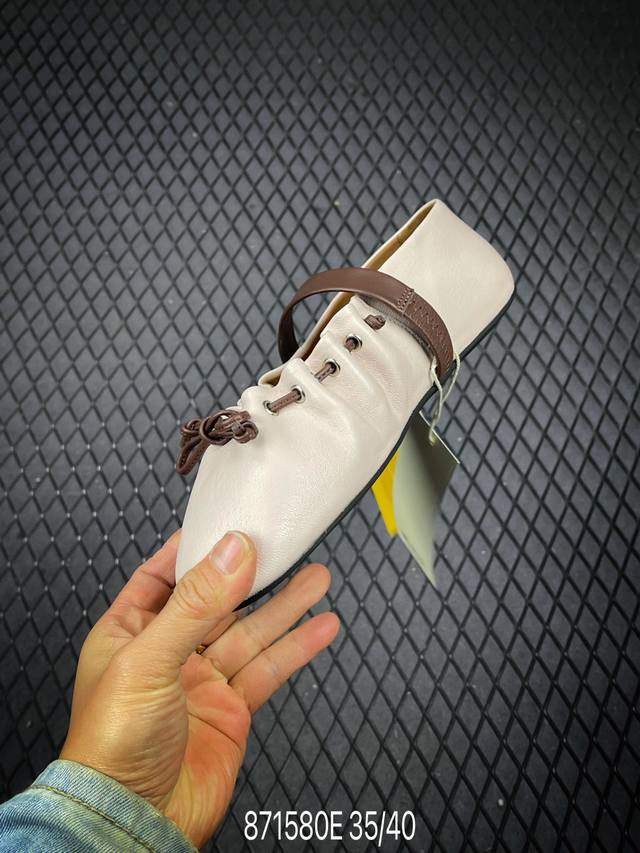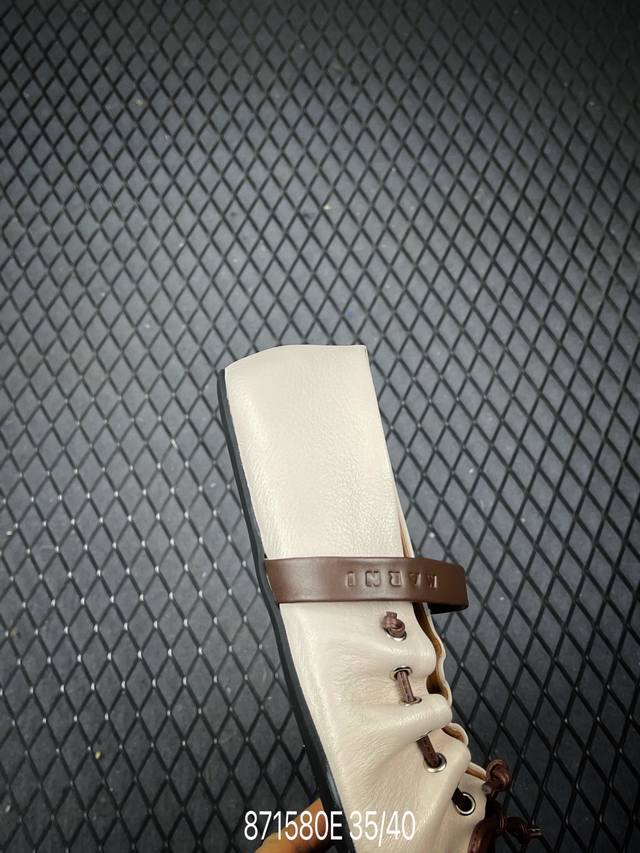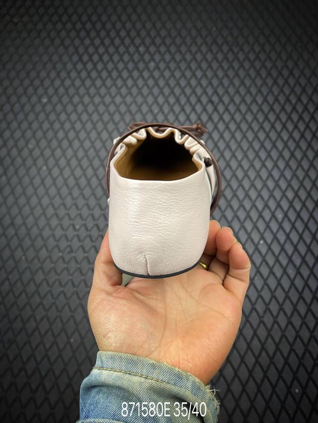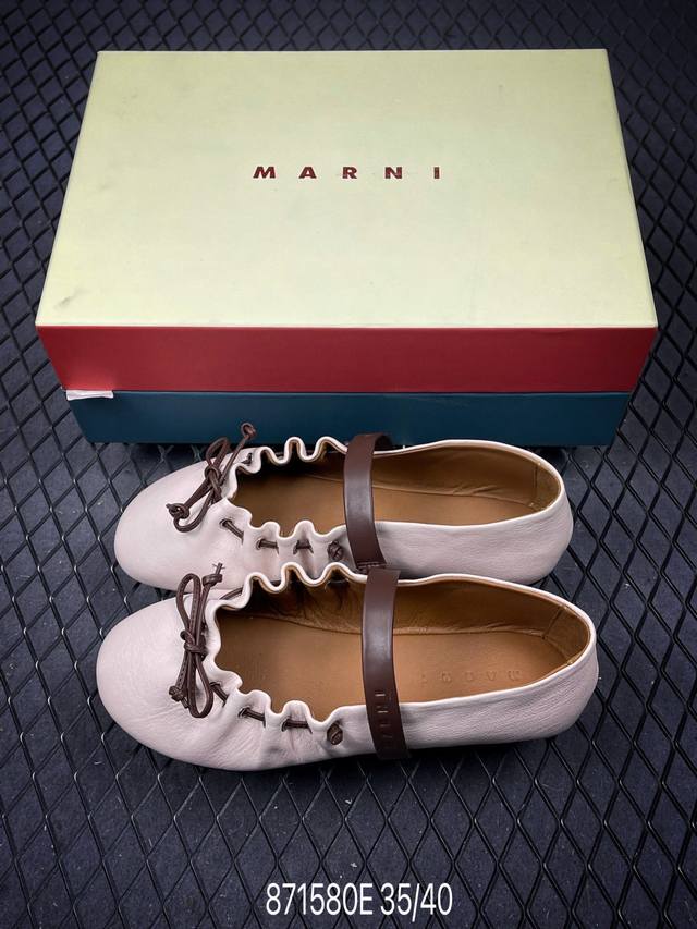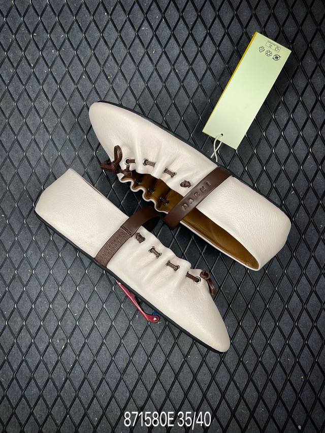 DDD 2026 Spring/Summer New Marni 26Fw Ruffled Bow Ballet Flat Mary Jane Shoes DDD Round toe silhouette, contrasting upper, brown bow and lace-up collar, presenting an overall cute and minimalist style. DDD Super cute Marni ballet flats, the color blocking and relaxed lace-up are just the right balance of sweet and cool. DDD The romantic season of Balletcore is here again. Open your shoe cabinet, ballet flats are definitely the item that can match everything and brighten up everything! Upper: Calfskin DDD Insole: Sheepskin DDD Outsole: Open-molded rubber outsole DDD Sizes: 35 36 37 38 39 40 DDD Code: 871580E DDD