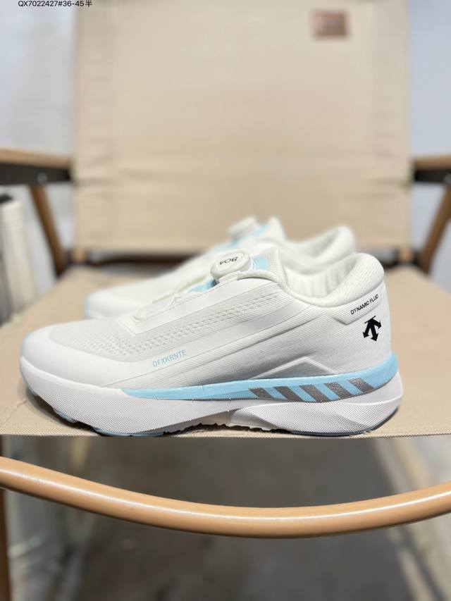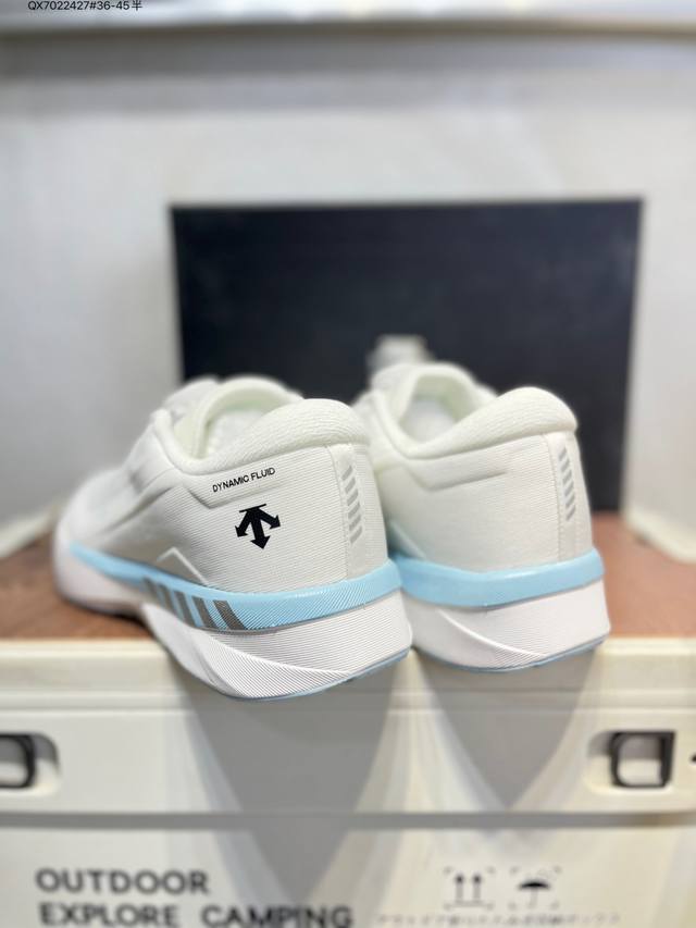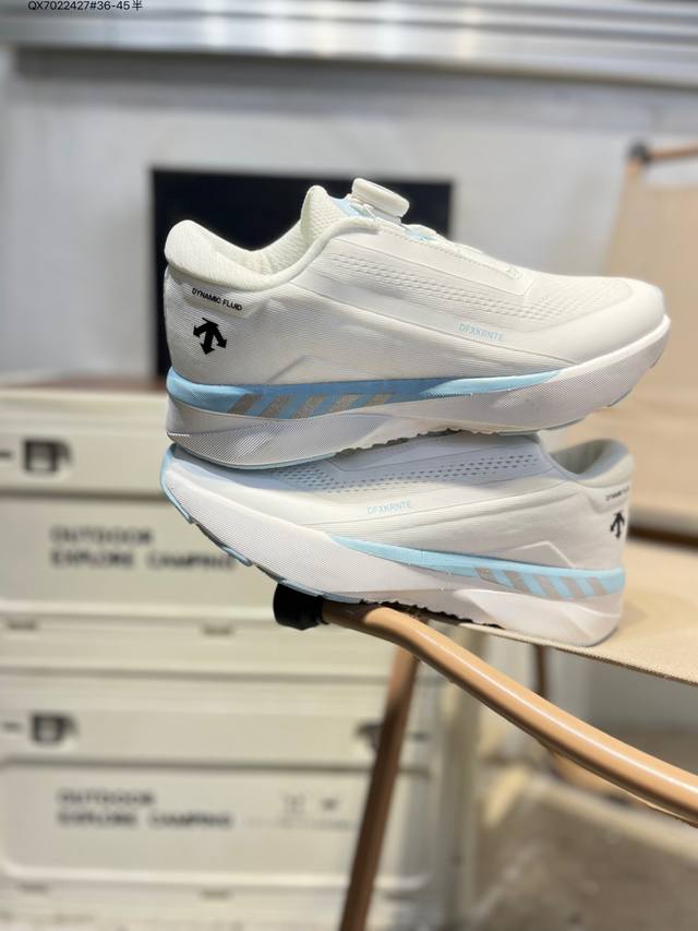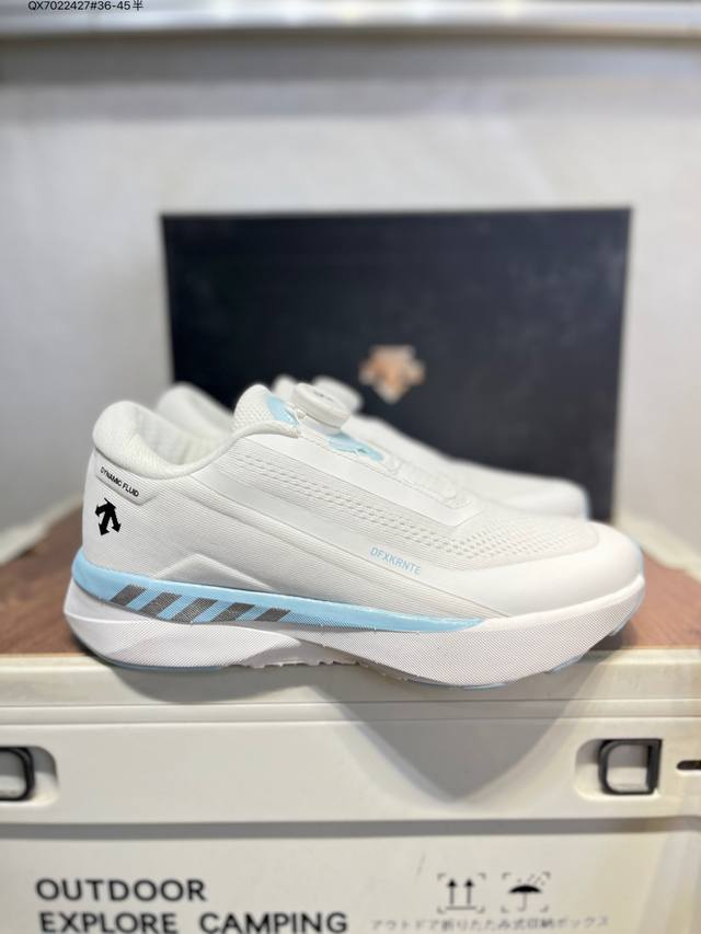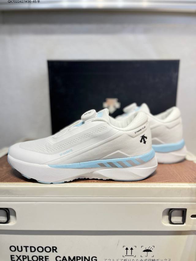 Descente Enerzite Comfortable and Versatile Fabric Wear-Resistant Rebound Low-Top Running Shoes. Descente was founded in 1935, and the brand name comes from the French word meaning "downhill." The brand's arrow logo represents the three techniques of skiing: "high-speed straight-line skiing," "crossing," and "side-skiing," also symbolizing the brand's continuous pursuit of perfection and innovation in creating high-end professional sports products . It is committed to becoming the leading brand in China for high-end professional skiing, cross-training, women's, triathlon, and golf . 20250303 Qx7022427#36-45 Half DDD