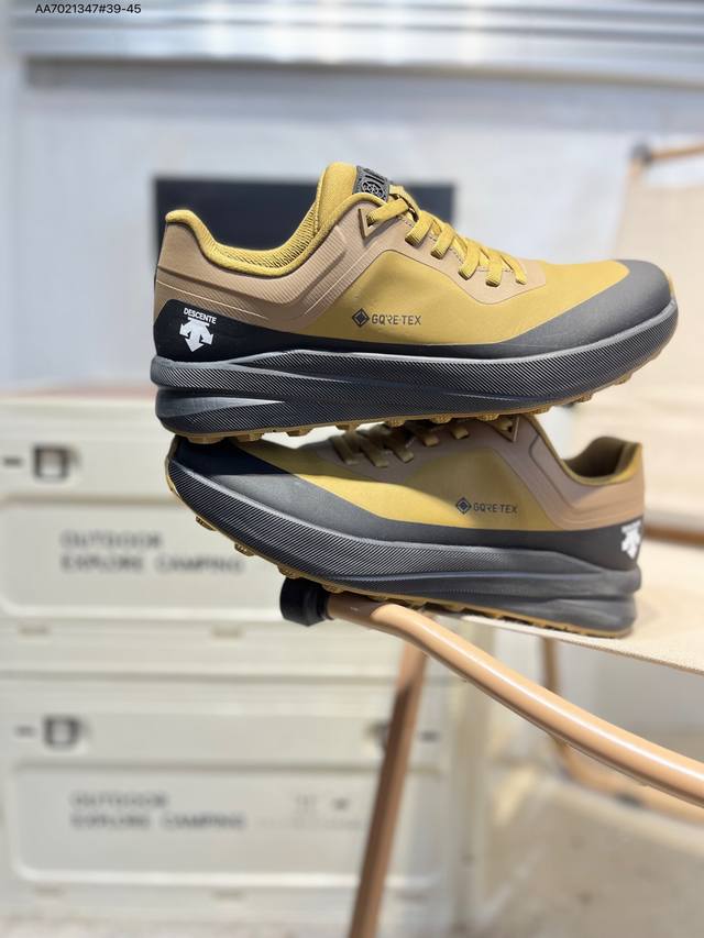Descente lightweight, cushioned, breathable, stylish, casual, athletic, waterproof men's trail running shoes are now officially available. Suitable for technical routes and single-day hiking. The Aeriosflgtx shoes, inspired by long-distance trail running shoes, are designed for fast, light hiking on varying terrains, offering comfort and support for confidence. The design integrates with the foot to minimize friction, features a waterproof Gore-Tex membrane, and incorporates Gore Invisiblefit technology for a thinner and more comfortable fit. Agility, stability, and confidence on technical routes are achieved through a Vibram Megagrip outsole, a compression EVA insole, and an integrated TPU. Weight approx. 275g Technical Features: Waterproof, Breathable, Lightweight, Durable Outsole Construction: Vibrammegagripm rubber compound, durable and soft Shoe Construction: TPU toe cap, abrasion resistant, compressible EVA foam insole, and integrated TPU core enhance flexibility and stability for your confidence Shoe Padding Construction: 4mm thick OR molded insert material, Gore-Tex film, TPU high abrasion resistant protective film, Cordura mesh fabric 0710 Aa7021347#39-45 DDD