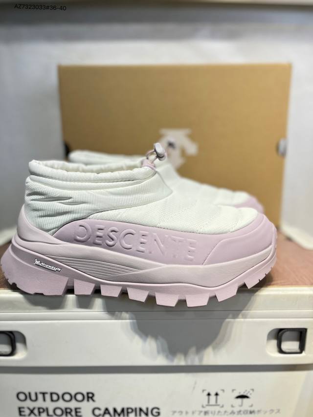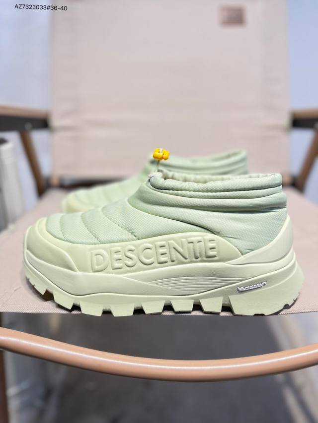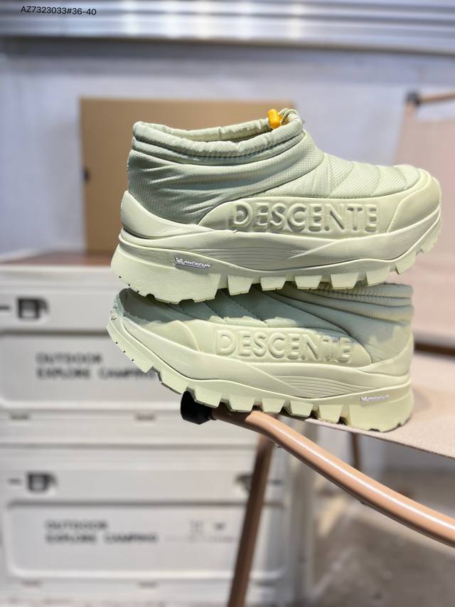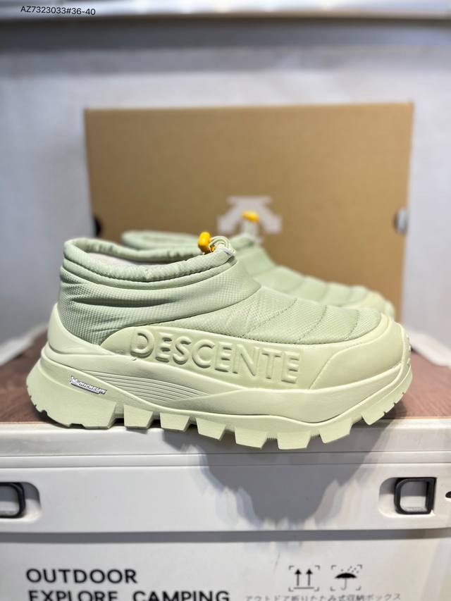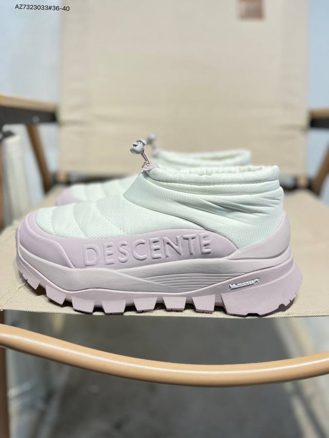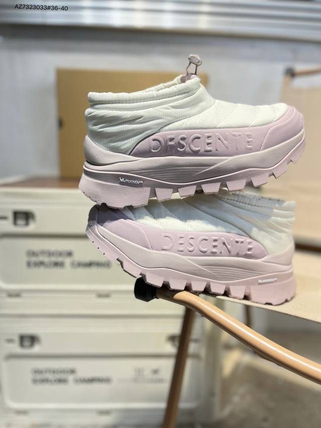 Descente Polestar Mid Sports Boots for Men and Women, Durable, Cushioning, Warm, and Abrasion-Resistant. These mid-top snow boots feature a supercritical foam cushioning midsole for soft, springy comfort; a herringbone-patterned, abrasion-resistant rubber outsole for excellent grip and durability; a nubuck leather upper for a stylish look; a soft and comfortable nylon tongue; and a flocked lining for enhanced warmth. A side zipper makes them easy to put on and take off. Features include: Supercritical foam cushioning midsole for soft, springy comfort; Nubuck leather upper for a stylish look; nylon tongue for soft comfort; flocked lining for comfort and warmth; and a herringbone-patterned, abrasion-resistant rubber outsole for excellent grip and durability. Product No.: D5432Ssn39 Az7323033#36-40