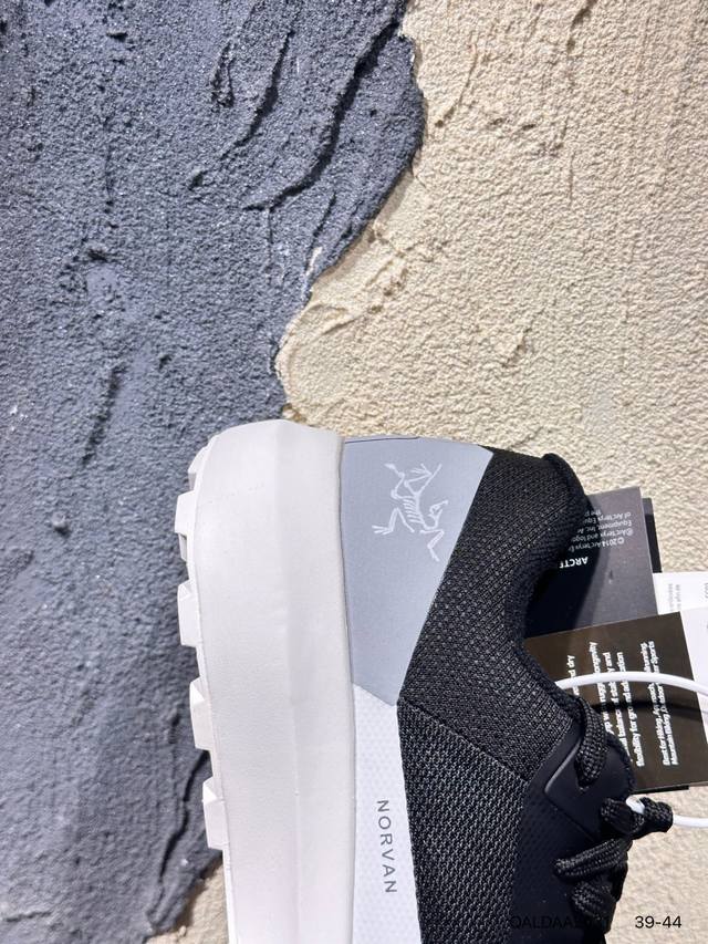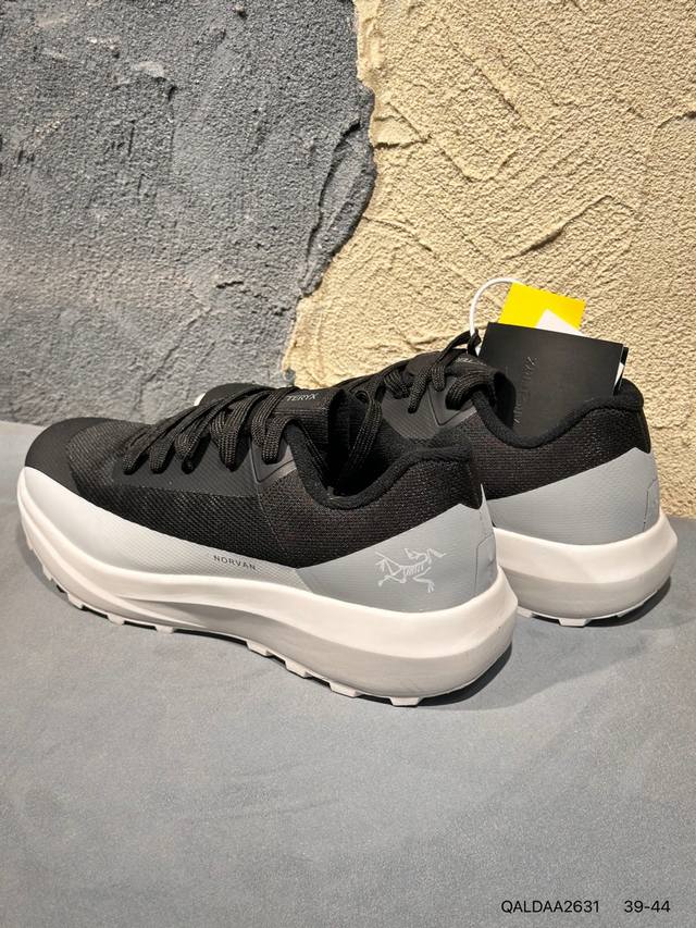 Developed using the original last and paper template, this shoe features a waterproof and durable canvas upper, an anti-kick rubber toe cap, 85% compressed EVA cushioning midsole, and an external Vibram gold-plated durable serrated outsole, making it suitable for both off-road hiking and daily commuting! Arc'teryx Aerios FL 2 GTX M series multi-functional climbing and lightweight outdoor hiking shoe with a black and silver logo. (071244 Qaldaa2631