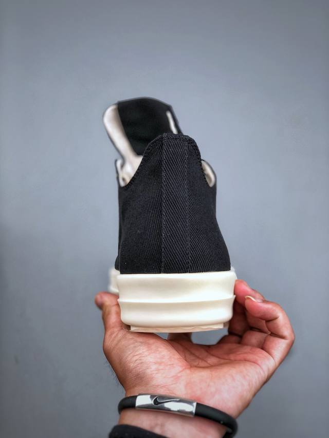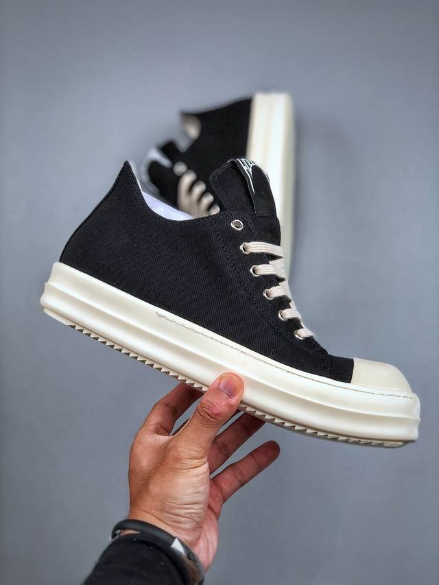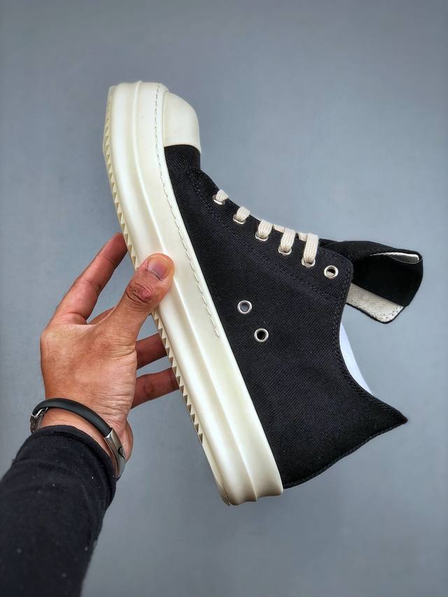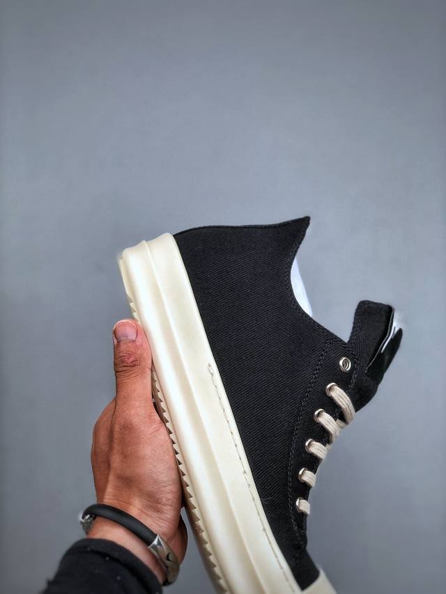 Dongguan-made G version, Rick Owens Drkshdw Hollywood style canvas low-top long-tongue black DDD. Made in Dongguan, brand new 2025 material, high-gloss, lightweight 12 oz canvas. DDD Shoelaces: Water-dyed and custom-woven process, high density, revealing a glossy finish! DDD Toe cap: Creamy white calfskin, soft and supple, with a fine texture when gently pressed! DDD Outsole: TPU outsole with a milky scent! Hardness and feel are 1:1! The logo stamp on the outsole is clear and accurate! DDD Insole: One piece of cowhide insole + logo, exclusive private mold punching! DDD Sizes: 36 37 38 39 40 41 42 43 44 45 46. Suitable for export business, extra large sizes available! DDD