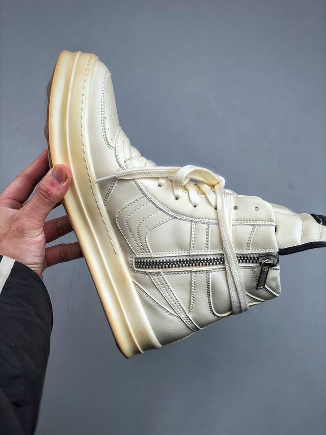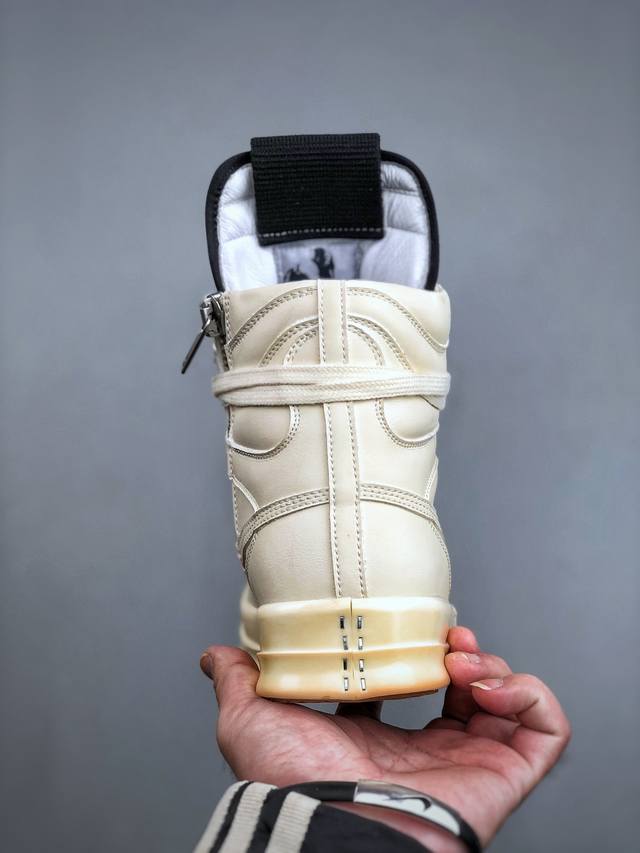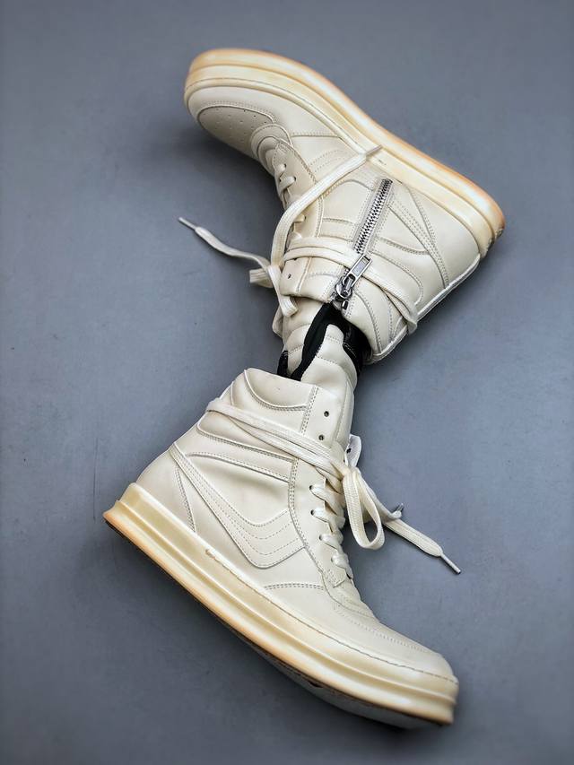 Dongguan-made G version, Ro Rick Owens DDD style high-top thin-lace shoes, off-white DDD leather, imported from Dongguan factory, brand new 2025 new material "tumbled grain top layer calfskin". DDD shoelaces use water-dyed fixed weaving process, high density, revealing a glossy feel! DDD zipper Ro zipper with custom logo engraving, smooth and unobstructed zip! DDD toe is all black calfskin, soft and supple, with a fine textured feel when gently pressed! DDD tongue lining is also all cowhide, cut from a single piece of cowhide, no splicing, no scraps! DDD outsole TPU outsole with a milky scent! Hardness and skin feel are 1:1! The logo stamp on the outsole is clear and correct! Exclusive private mold thickened design! DDD insole is a whole cowhide insole + 3 layers of sandwich foam material, white + pink, exclusive private mold punching! DDD Sizes: 36 37 38 39 40 41 42 43 44 45 46 DDD