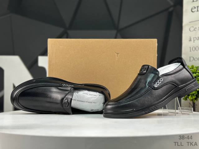 Ecco 2025 Newest Generation Business Casual Men's Shoes, British Style Formal Men's Leather Shoes, Loafers, Synchronized with Department Stores, High-End Fashionable Men's Shoes, Imported Cowhide Lining, Pigskin Wear-Resistant and Non-Slip Rubber Outsole, First-Class Craftsmanship + Fashion Elements, Baroque Classic Series, Won't Hurt Feet, Comfortable and Good-Looking. Sizes 38-44, Standard Leather Shoe Sizes, Classic Options Available. Comes with Original Packaging. Tll Tka DDD
