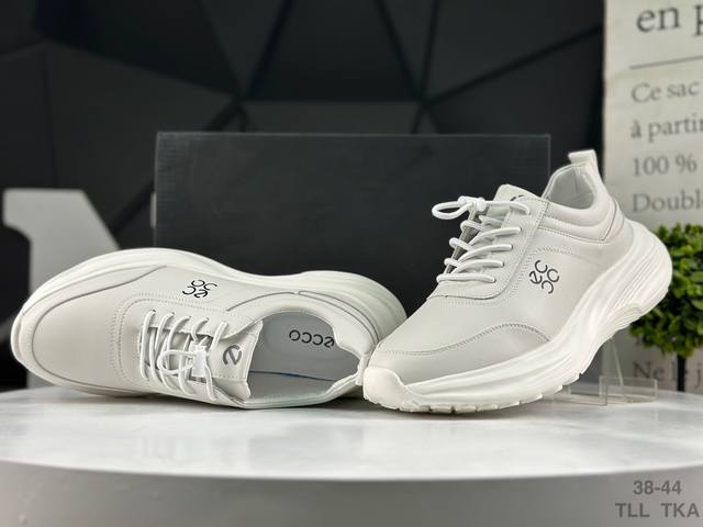 Ecco genuine leather sneakers. Natural, flexible, and durable cowhide upper with direct injection molding. Upper and sole formed into a one-piece, comfortable, and durable rubber outsole. Adapts to various terrains. Non-slip, wear-resistant, and strong traction. Biom Core Natural Rhythm technology, ergonomic, long-lasting cushioning and energy rebound.