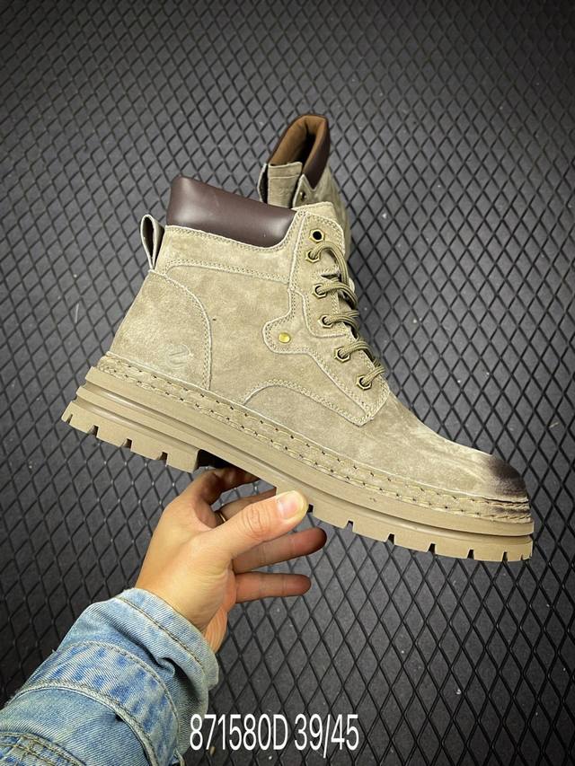 Ecco Men's Boots, Yellow Boots, Anti-slip Thick-soled Martin Boots, Work Boots, Genuine Leather Boots, Cool Series. Made with premium top-grain leather, the upper is elastic, flexible, comfortable, and breathable, providing a comfortable feel and a snug fit. The simple lace-up design allows for adjustable tightness. Exquisite stitching ensures durability and longevity. The anti-slip, elastic sole has a clear anti-slip texture, is lightweight and elastic without being bulky, and offers excellent grip and wear resistance. The soft, breathable lining provides a comfortable and stable fit. Sizes: 39 40 41 42 43 44 45. Shoe size code: 871580 DDD D