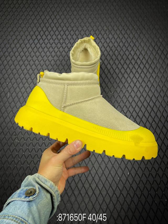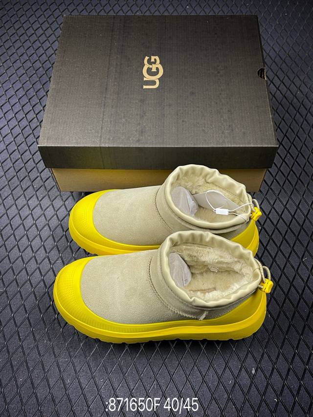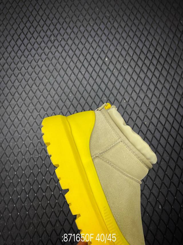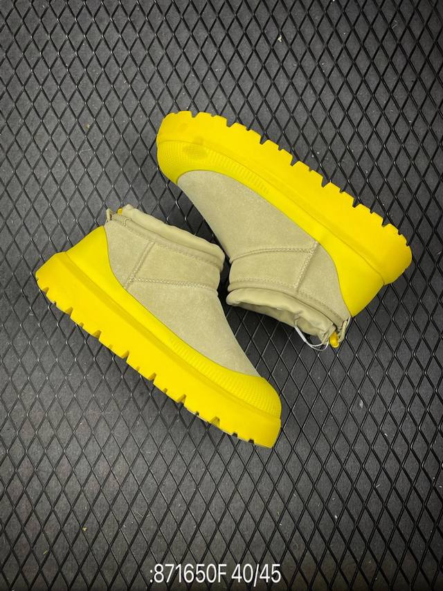 F Top-tier version on the market: Ugg 2025 Wang Yibo second generation series black 4cm thick sole. Produced by a large Guangzhou foreign trade factory. Genuine sheepskin from toe to insole, individually packaged in a box with a waterproof chip, distinguishing it from any other version on the market. Independently developed original design. Cashmere insole for winter warmth, suitable for both outdoor and home wear. In recent years, Ugg has launched a series of styles that cater to younger consumers, moving to the forefront of fashion trends. Shoe material: water-repellent coated suede upper, 17mm Uggpure embedded wool insole, lightweight, non-slip, comfortable rubber outsole with brand logo. Comes with full packaging. Sizes: 40 41 42 43 44 45. Code: 871650F.