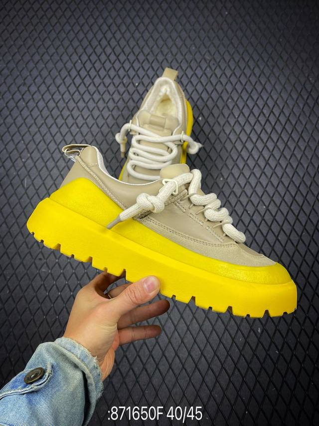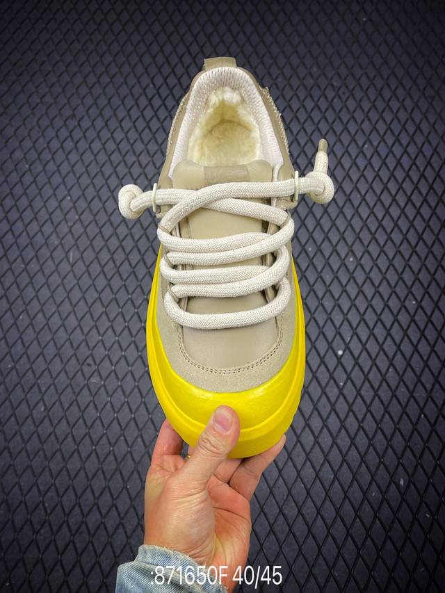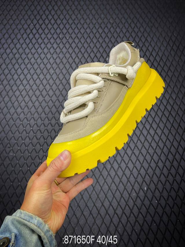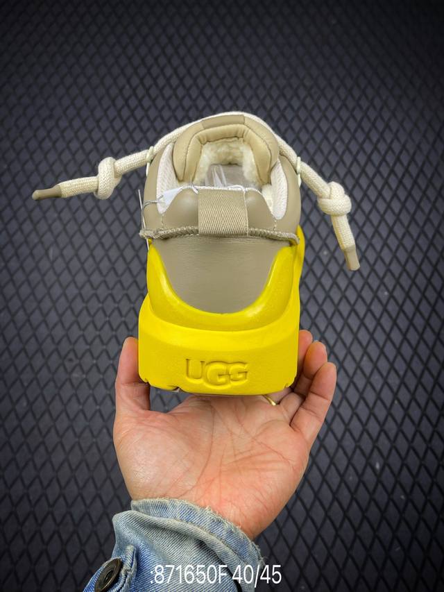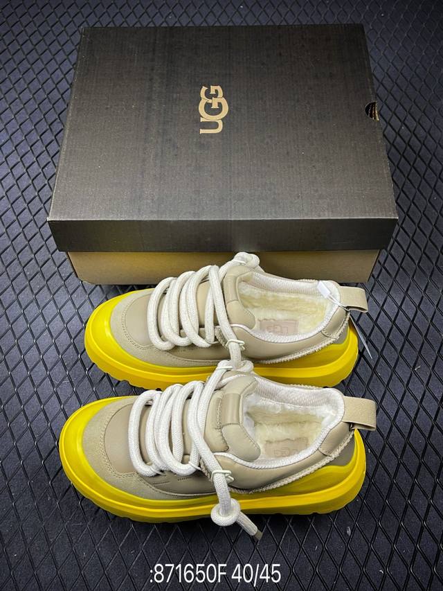 F Top-tier version on the market: Ugg 2025 Wang Yibo second generation series black 4cm thick sole. Produced by a large Guangzhou foreign trade factory. Genuine sheepskin from toe to insole, individually packaged in a box with a waterproof chip, distinguishing it from any other version on the market. Independently developed original design. Cashmere insole for winter warmth, suitable for both outdoor and home wear. In recent years, Ugg has launched a series of styles that cater to younger consumers, moving to the forefront of fashion trends. Shoe material: water-repellent coated suede upper, 17mm Uggpure embedded wool insole, lightweight, non-slip, comfortable rubber outsole with brand logo. Comes with full packaging. Sizes: 40 41 42 43 44 45. Code: 871650F.