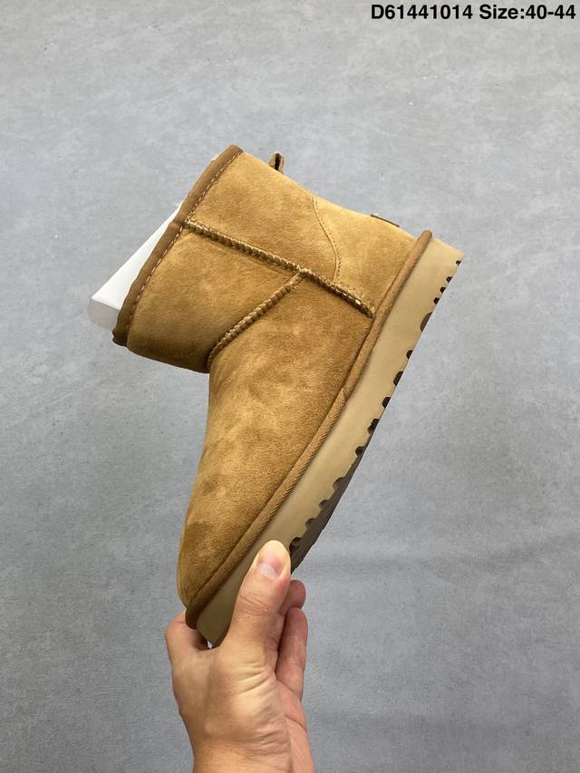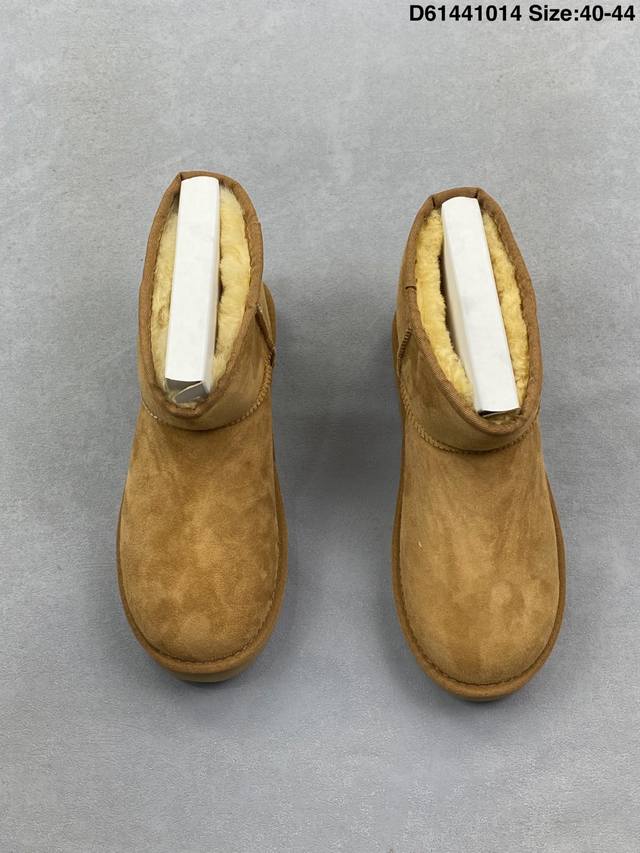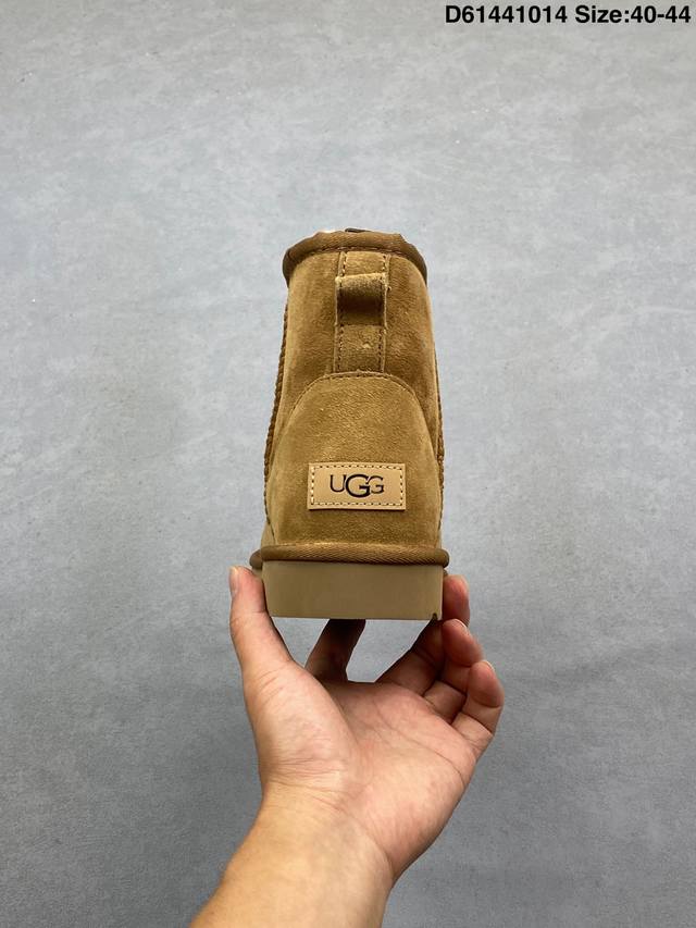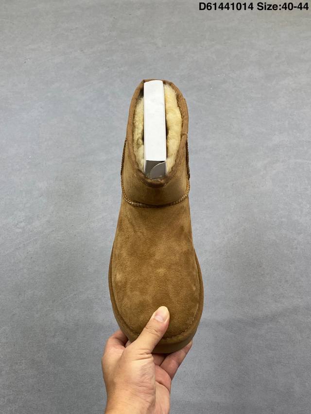 Factory-grade Ugg women's snow boots with laces, made in Guangdong. Features a TPU molded upper with inlaid antelope brown wool, making it waterproof. It uses a 7mm Uggpure embedded wool lining and a removable Uggpure embedded wool insole. The Treadlite lightweight outsole offers excellent slip resistance, abrasion resistance, and good elasticity. A new autumn/winter style, endorsed by Zhou Dongyu. American luxury brand Ugg series mid-calf fleece-lined casual versatile ankle boots.