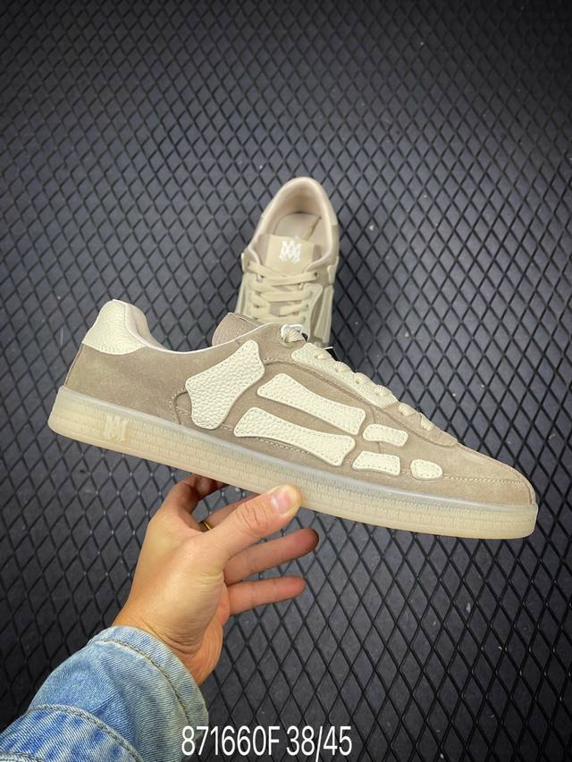 FAmiri Skeleton High Shoes DDD This simple yet stylish shoe is suitable for various clothing styles. It easily complements everyday wear, allowing you to showcase your taste in different occasions. The gum sole provides a relaxed feel, giving it a subtle yet eye-catching street style. DDD Correct tongue turn-out detail, correct bone shape DDD Top-grain cowhide upper + high-density breathable mesh upper. The side bone design uses two pieces of cowhide bonded together for better three-dimensionality. Leather cuts are evenly finished with oiled edges. True to size. Full packaging. Double-layer thickened leather DDD Sizes: 38 39 40 41 42 43 44 45 DDD Code: 8716 60F DDD