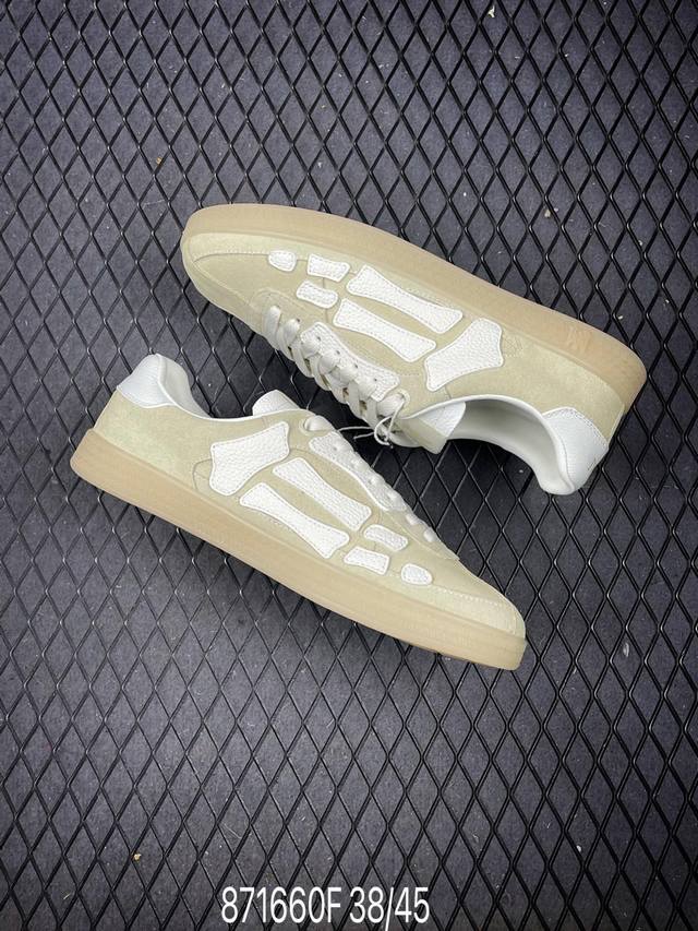 FAmiri Skeleton High Shoes DDD This simple yet stylish shoe is suitable for various clothing styles. It easily complements everyday wear, allowing you to showcase your taste in different occasions. The gum sole provides a relaxed feel, giving it a subtle yet eye-catching street style. DDD Correct tongue turn-out detail, correct bone shape DDD Top-grain cowhide upper + high-density breathable mesh upper. The side bone design uses two pieces of cowhide bonded together for better three-dimensionality. Leather cuts are evenly finished with oiled edges. True to size. Full packaging. Double-layer thickened leather DDD Sizes: 38 39 40 41 42 43 44 45 DDD Code: 8716 60F DDD