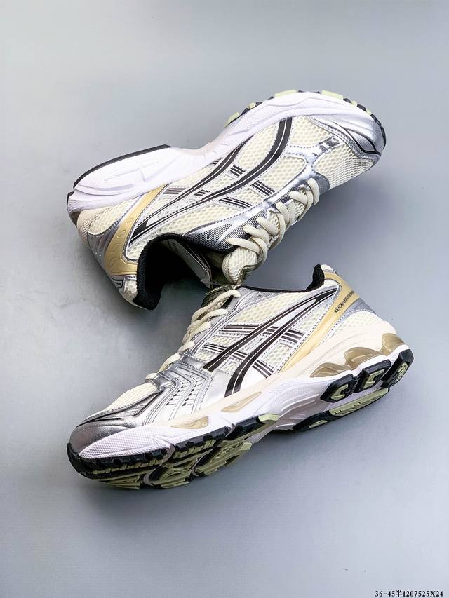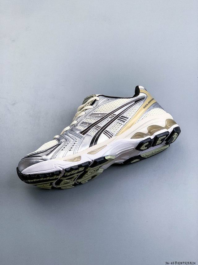 Featuring an eco-friendly space-age synthetic leather upper combined with breathable mesh fabric, the 3D visible Gel cushioning midsole combines upgraded Eva cushioning technology with a durable rubber outsole. A classic from 13 years ago makes its debut, an irresistible retro! The Asics Gel Kayano 14 series of lightweight, cushioned casual running shoes from the Japanese professional running shoe brand Asics was launched in 2008 amidst great anticipation. Designer Hidenori Yamashita drew inspiration from the word "Flash," creating a futuristic metallic upper and upgrading the internal performance. A complete overhaul from the inside out, it represents a milestone in the Gel-Kayano family's heritage and the continuation of classic running shoe culture. The Asics Gel Kayano 14 running shoe reinterprets the retro running shape, redesigned with a late 2000s aesthetic. The silver and blue upper exudes a premium feel. Mesh details on the upper and toe enhance breathability. The Asics Gel Kayano 14 features Gel cushioning in the heel midsole and multi-density abrasion-resistant outsole, providing high impact resistance, cushioning, and protection against ground impacts, resulting in exceptional comfort. Get yours now! (Ddd 1207525X24 DDD)