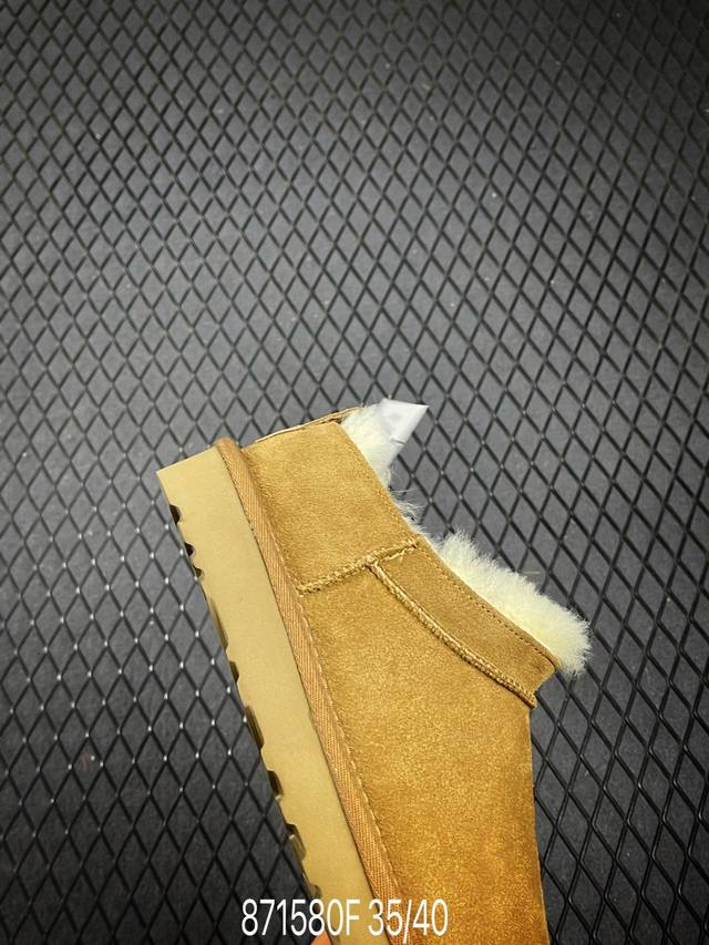 's independently developed, original outsole features a cashmere insole for winter warmth, making it a great choice for both outdoor and home use. In recent years, Ugg has introduced a series of styles tailored to the preferences of younger consumers, placing it at the forefront of fashion trends. The shoe's upper is made of water-repellent suede with a 17mm Uggpure implanted wool insole, making it lightweight, non-slip, and comfortable. The rubber outsole features the brand's logo and comes with a full set of packaging.