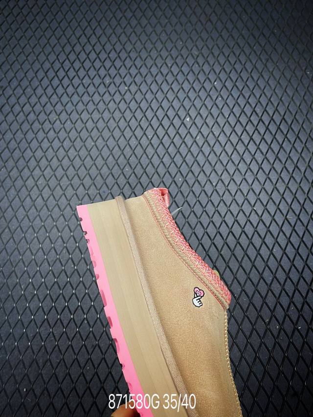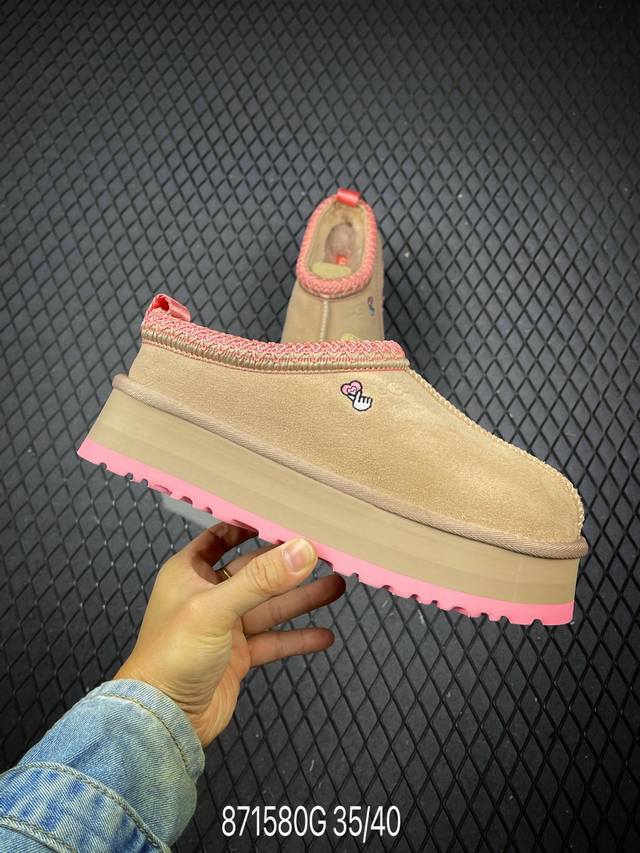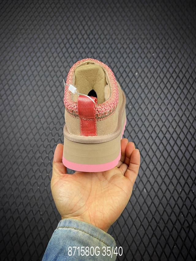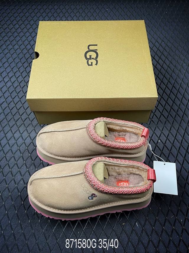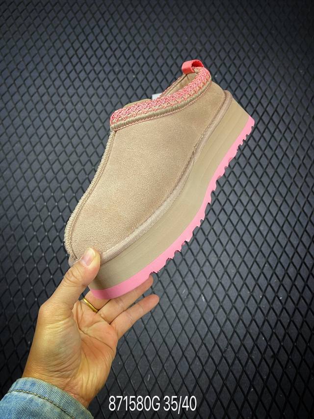 Uggtazz ethnic style thick-soled women's shoes, a popular item on Xiaohongshu (Little Red Book). Produced by a large Guangzhou foreign trade factory, these shoes feature genuine sheepskin from toe to insole, individually packaged in a chip with waterproof technology, distinguishing them from any other version on the market. The 5cm thick sole is an original design with a cashmere insole, perfect for winter warmth, both for outings and home wear. In recent years, Uug has launched a series of styles catering to younger consumers, moving to the forefront of fashion trends. The shoe body is made of water-repellent coated suede, 17mm thick Uggpure implanted wool insole, lightweight, non-slip, and comfortable. The rubber outsole features the brand logo and comes with full packaging. Sizes: 35, 36, 37, 38, 39, 40. Code: 871580 G