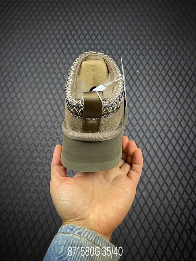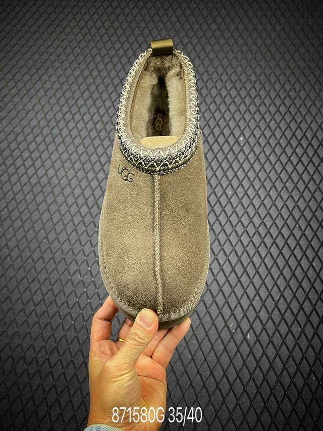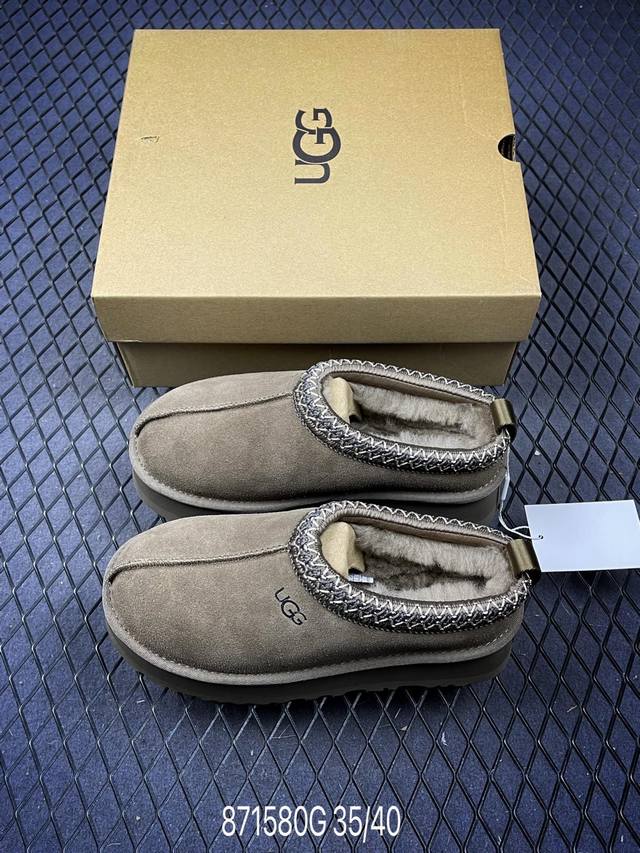 Uggtazz ethnic style thick-soled women's shoes, a popular item on Xiaohongshu (Little Red Book). Produced by a large Guangzhou foreign trade factory, these shoes feature genuine sheepskin from toe to insole, individually packaged in a chip with waterproof technology, distinguishing them from any other version on the market. The 5cm thick sole is an original design with a cashmere insole, perfect for winter warmth, both for outings and home wear. In recent years, Uug has launched a series of styles catering to younger consumers, moving to the forefront of fashion trends. The upper is made of water-repellent coated suede, 17mm thick Uggpure implanted wool insole, lightweight, non-slip, and comfortable. The rubber outsole features the brand logo and comes with full packaging. Sizes: 35, 36, 37, 38, 39, 40. Code: 871580 G