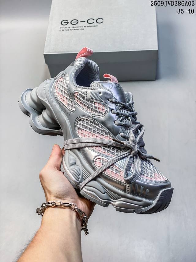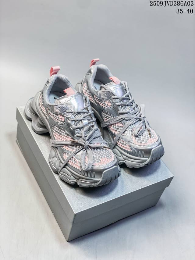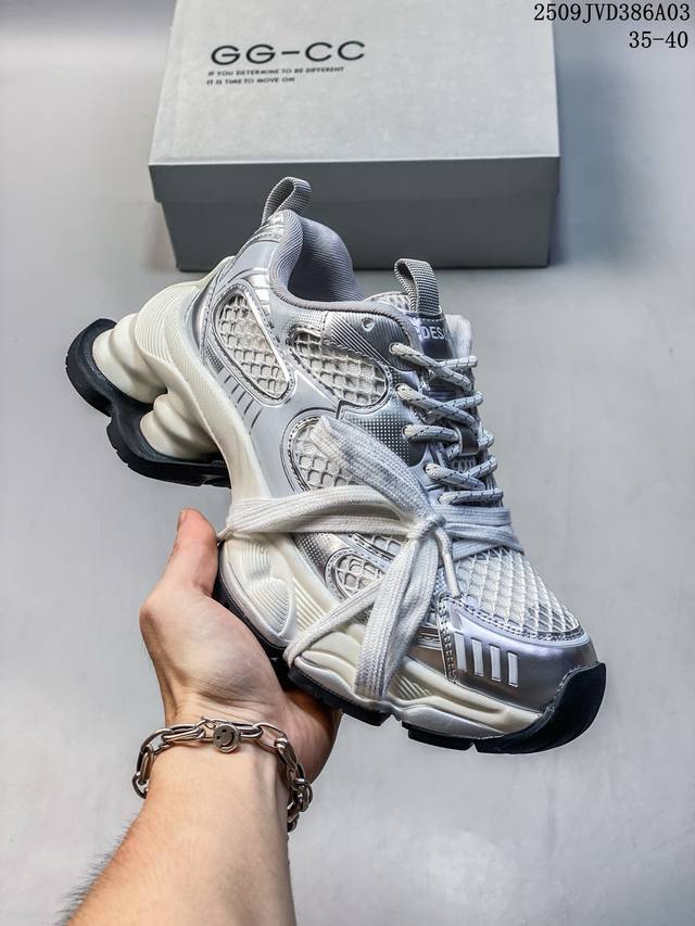 Gg-Cc Lin Yun's same style 5cm thick sole height increase galaxy particles silver white silver horn king crescent sole strap hollow dad shoes