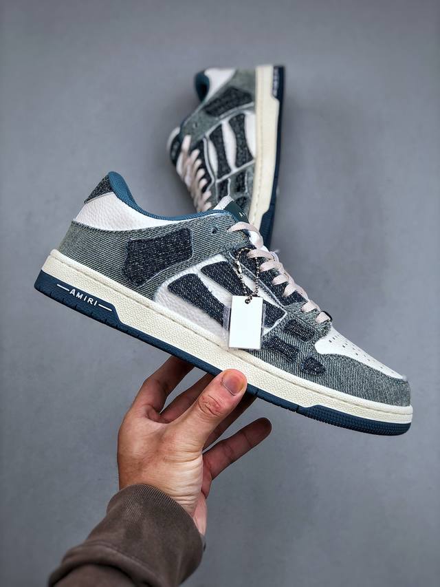 Amiri Skeleton High Sneakers - Low-top, Los Angeles Streetwear King, High-end Emil, Original Barefoot Shoes, Distinguishing from All Versions Sold on the Market, Correct Tongue Turn-Up Details, Correct Bone Shape, Top-grain Cowhide Upper + High-density Breathable Mesh, Side Bone Design with Two Cowhide Patches for Better Three-Dimensionality, Evenly Finished Leather Cuts, Custom Metal Logo, Nameplate and Hangtag, True to Size, Full Packaging, Correct Double-Layer Thickened Leather, Sizes: 39-45