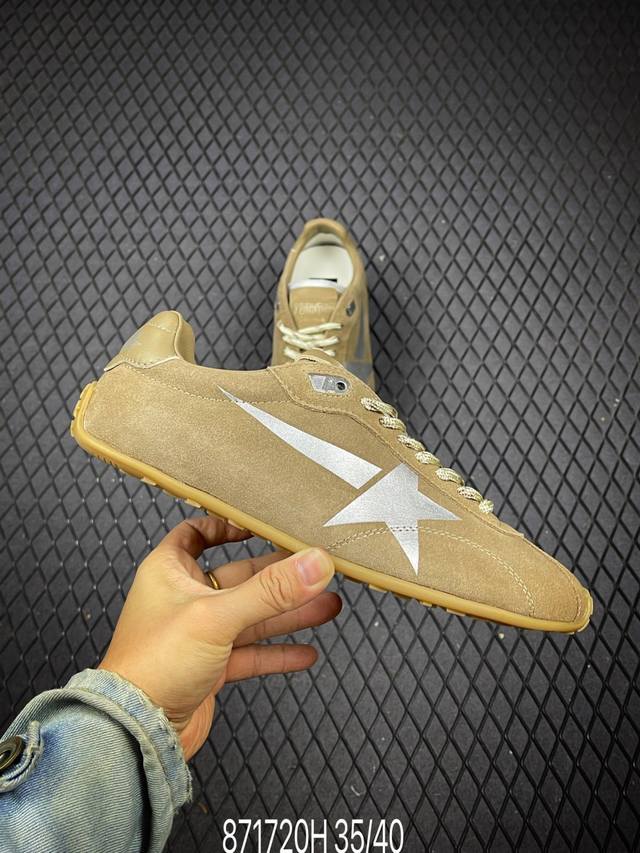 Dongguan-made replica Ggdb Golden Goos* 25Ss Marathon Speed series walking shoes - 70s American track and field style, outlining speed aesthetics with simple lines, lightweight shoes break through traditional constraints. Nylon upper and leather splicing, both lightweight and breathable, perfectly embodying the spirit of competition. Low-top design liberates the ankle, and streamlined sole enhances traction. Bright color scheme exudes vitality, integrating track passion into everyday wear. This style remains a classic paradigm of sports aesthetics, witnessing the enduring charm of track and field culture.