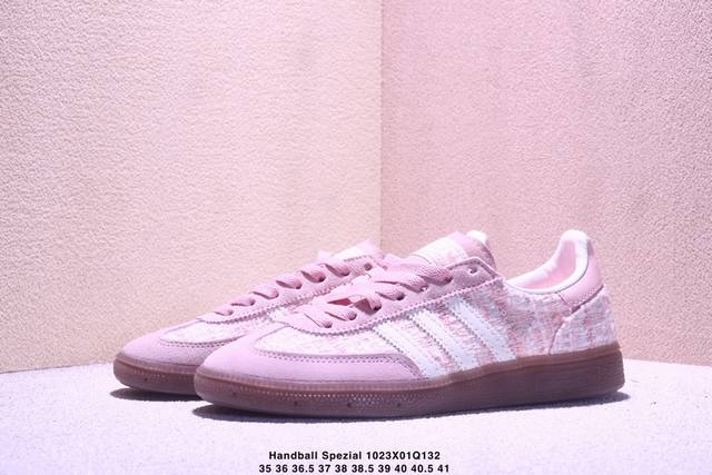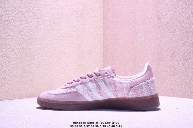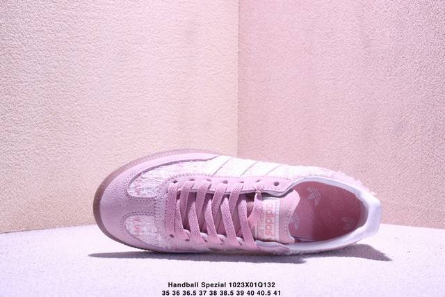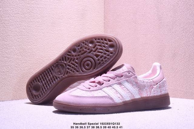 Handball Spezial Grey Brown White Retro Casual Sneakers. The entire shoe is made of suede with a durable rubber outsole. (