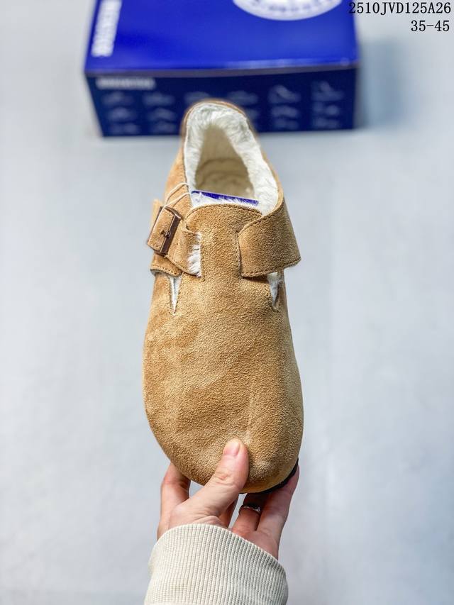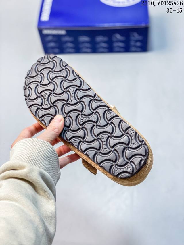 High-quality Birkenstock slippers, spring bestseller, top seller. Classic quality German Birkenstock unisex cowhide suede soft-soled Boston closed-toe slippers. Made with Zp original leather, no artificial thickening with added leather! Zp original beech wood particles and cork, distinguishing them from fake cork on the market! Clear high-frequency engraving on the Birkenstock midsole, 1:1 replica of the official stamp! Size: See picture. Code: 10Jvd125A26